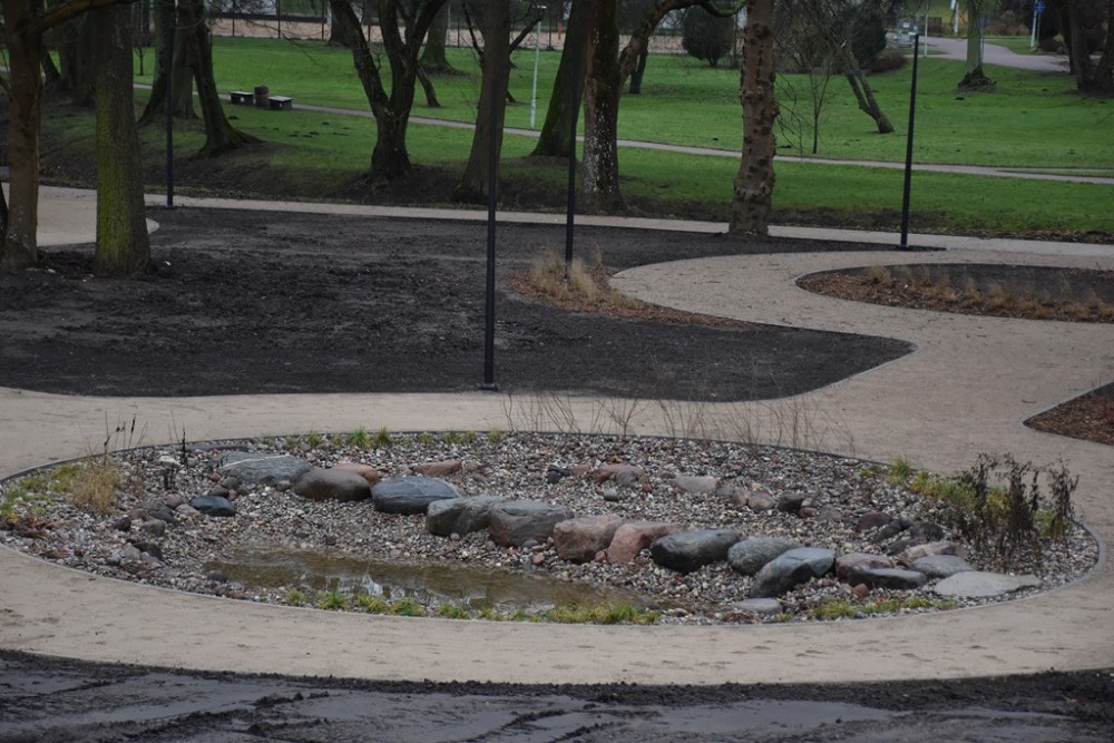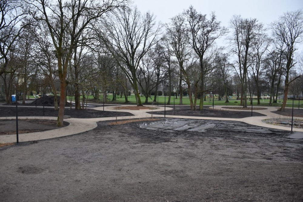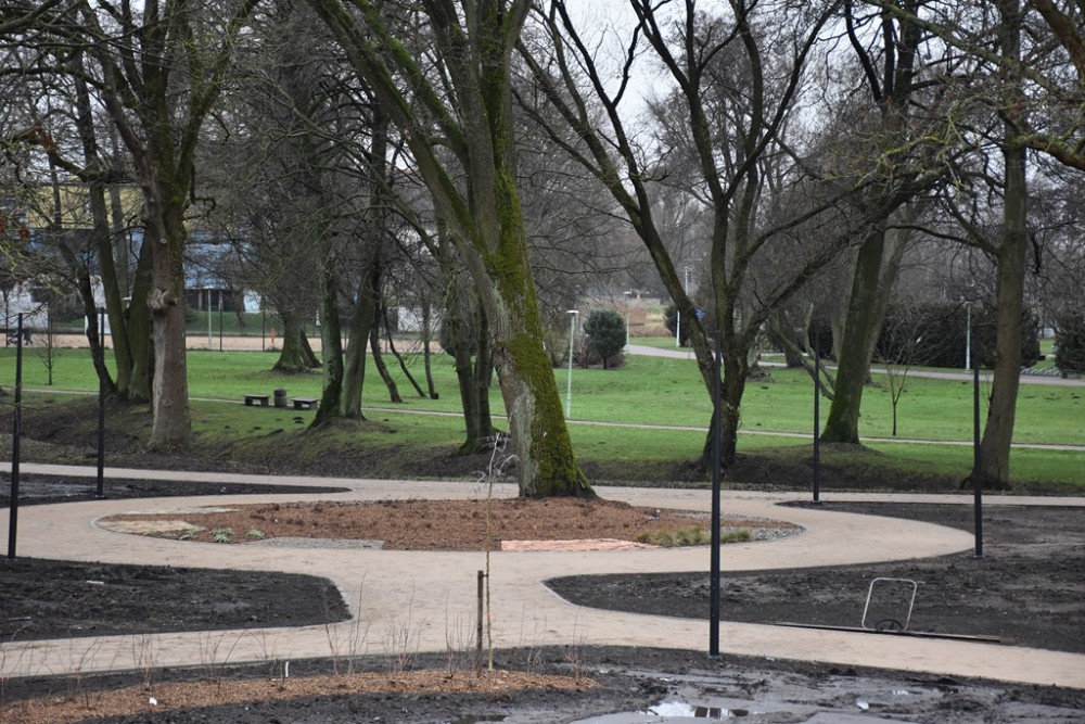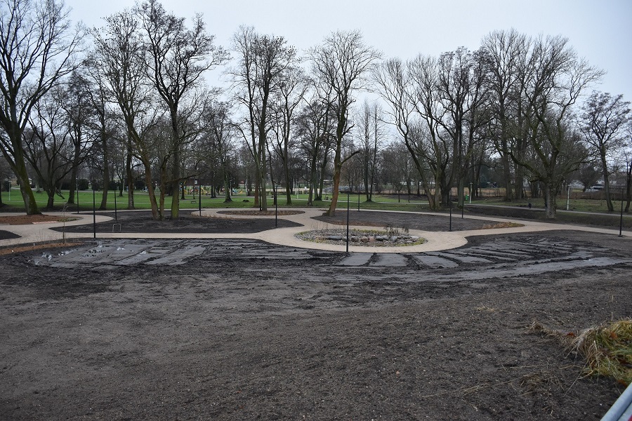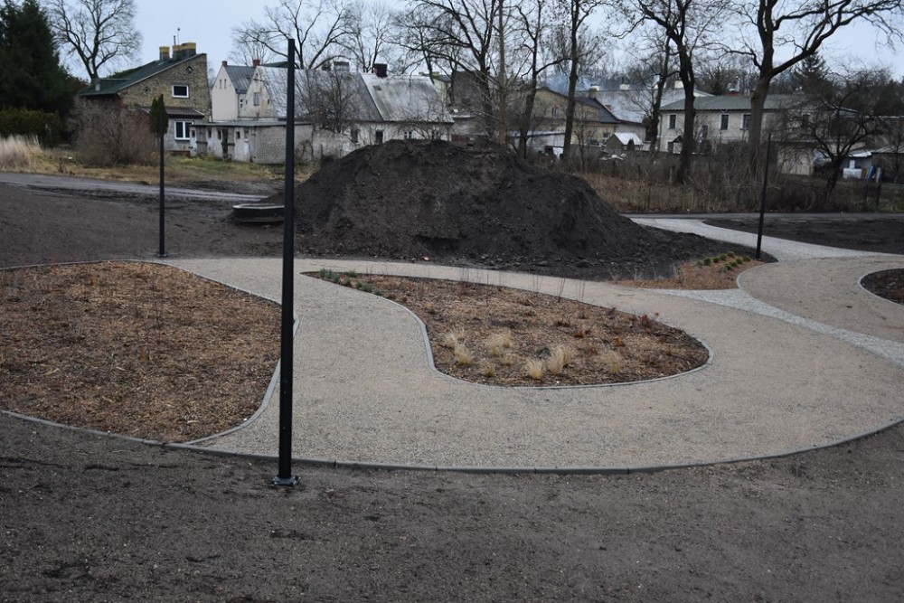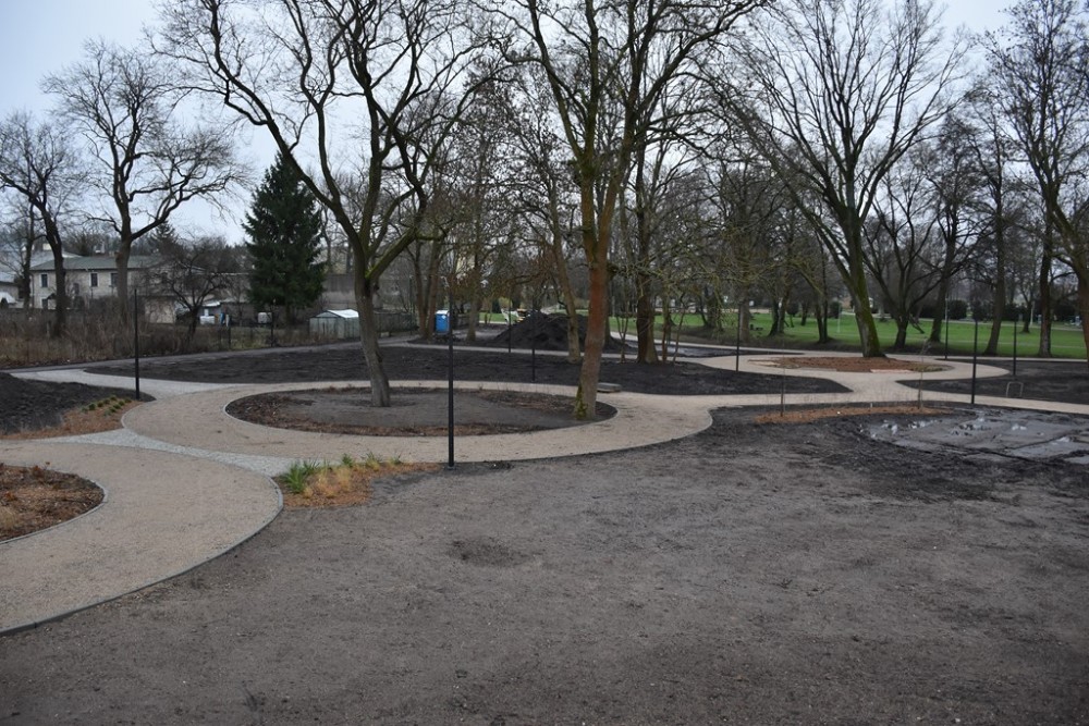 Pierwsze nasadzenia już zostaÅ‚y wykonane. Wytyczone zostaÅ‚y Å›cieżki, które wysypano ubitym żwirem.