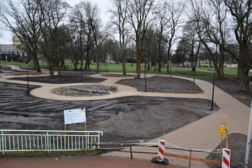 Pozostało zamontować lampy oświetleniowe, rozsypać ostatnią górę czarnej ziemi, na której zasadzonych ma być w sumie 60 gatunków drzew, krzewów i bylin prezentujących paletę barw i kształtów, owoców, nasion, liści i kwiatów.