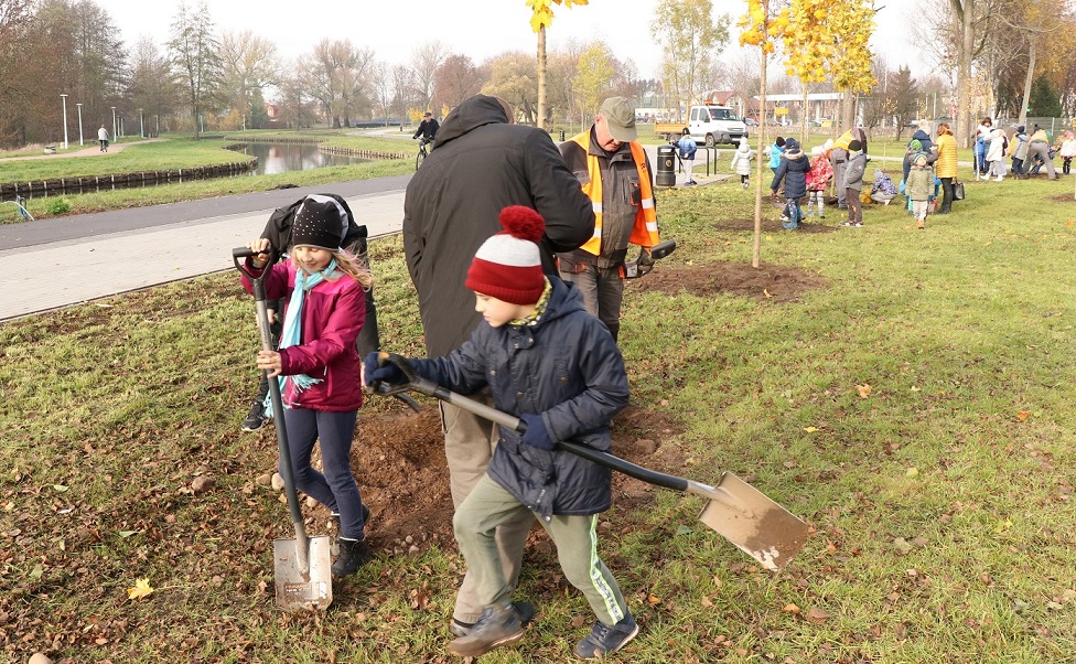 Dzieci z Przedszkola nr 1 i Szkoły Podstawowej nr 4 w Suwałkach, mieszkańcy i przedstawiciele władz samorządowych wzięli dziś udział w akcji sadzenia drzew przy powstających suwalskich bulwarach.