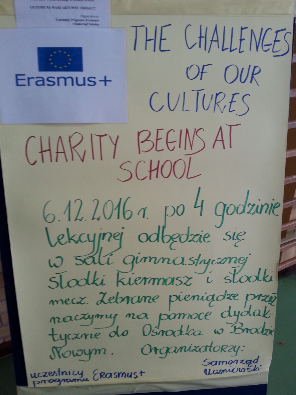 Od 1 października Zespół Szkół nr 3 w Suwałkach uczestniczy w programie Erasmus+ realizując projekt: Wyzwania naszych kultur. Partnerskimi krajami są Niemcy, Czesi, Włosi i Hiszpanie. Na grudzień 2016 roku wszystkie kraje wyznaczyły sobie działanie pt. Dobroczynność zaczyna się w szkole.