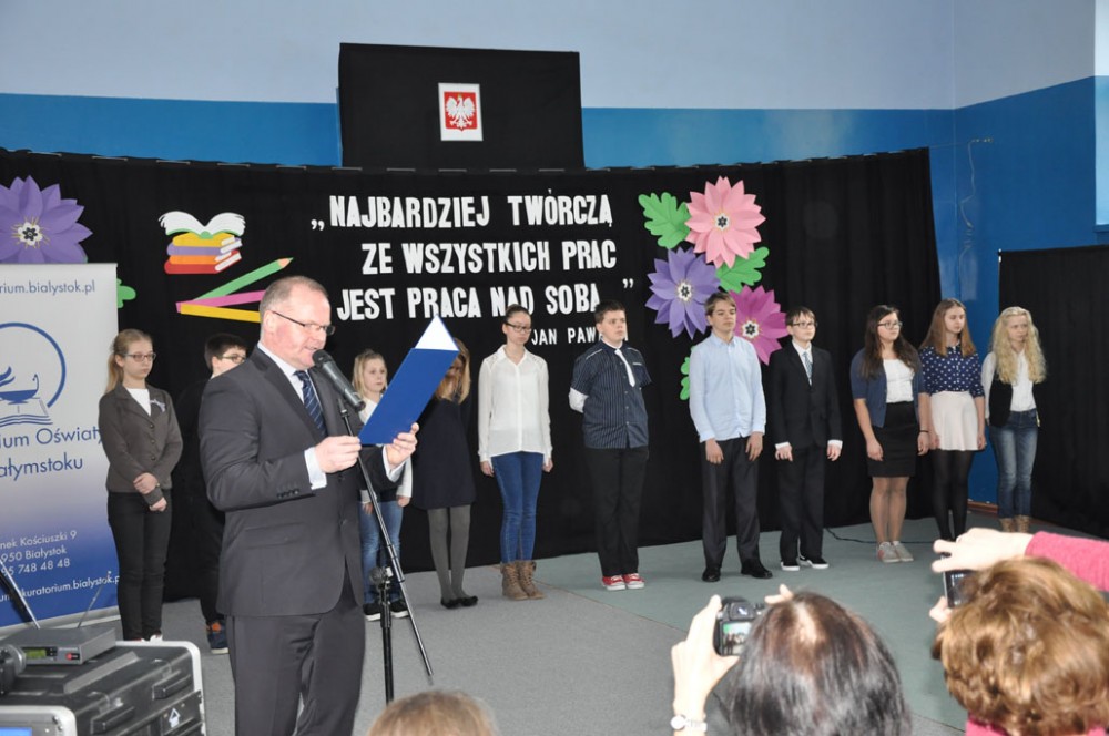 Halina Walendzewicz, dyrektor placówki, otrzymała list gratulacyjny od Podlaskiego Kuratora Oświaty oraz pamiątkowy grawerton od Wojewody Podlaskiego. Na drugim miejscu uplasował się Szkoła Podstawowa nr 7, w której uczy się 13 laureatów.
