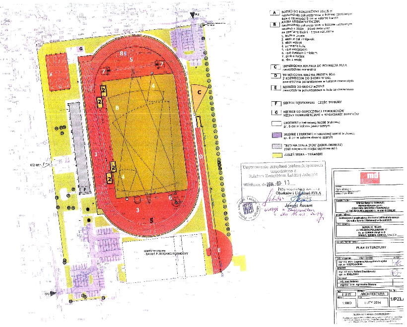 Swoje uwagi wniósÅ‚ PZLA. W piÅ›mie skierowany do inwestora czytamy m.in.: „Informujemy, że w stosunku do wymaganej dla stadionów kategorii III brak jest wymaganych dwóch skoczni d skoku o tyczce oraz skoku wzwyż (wymagane do uzyskania prawa do organizacji zawodów o mistrzostwo Polski w wielobojach – dop. wÅ‚.). PZLA proponuje też "przeprowadzenie badaÅ„ i przedstawienie po wykonaniu stadionu, potwierdzenia przez jedno z laboratoriów akredytowanych przy IAAF albo przez Instytut Techniki Budowlanej w Warszawie (...) zgodnoÅ›ci parametrów poÅ‚ożonej nawierzchni, posiadajÄ…cej certyfikat IAAF z parametrami ustalonymi przez IAAF dla danego rodzaju nawierzchni."
