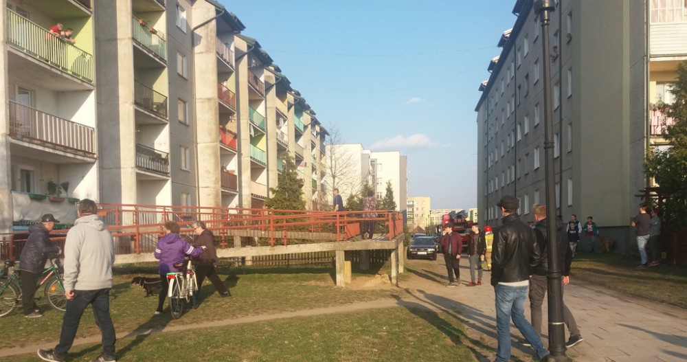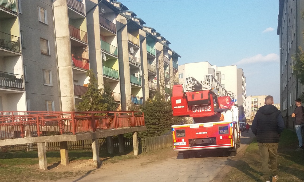 Blok przy Kowalskiego 23A otoczyły cztery samochody straży pożarnej, przyjechała też karetka pogotowia, a na koniec policja.