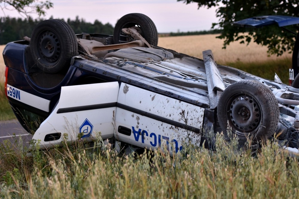 Do zdarzenia doszło na trasie Suwałki – Filipów w okolicach godziny 19.00. Policjanci wieźli w radiowozie pijaną kobietę, która miała trafić do suwalskiej izby wytrzeźwień. W Brodzie Małym, kilka kilometrów do Suwałk, radiowóz wypadł z drogi i dachował.