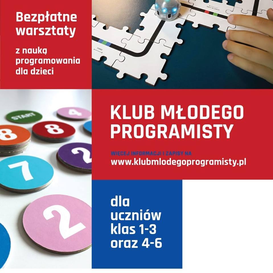 Jeśli nie uda Ci się zapisać swojego dziecka na tę turę zajęć, nie martw się, śledź stronę www.klubymlodegoprogramisty.pl i profil FB:https://www.facebook.com/KlubMlodegoProgramistyPl/