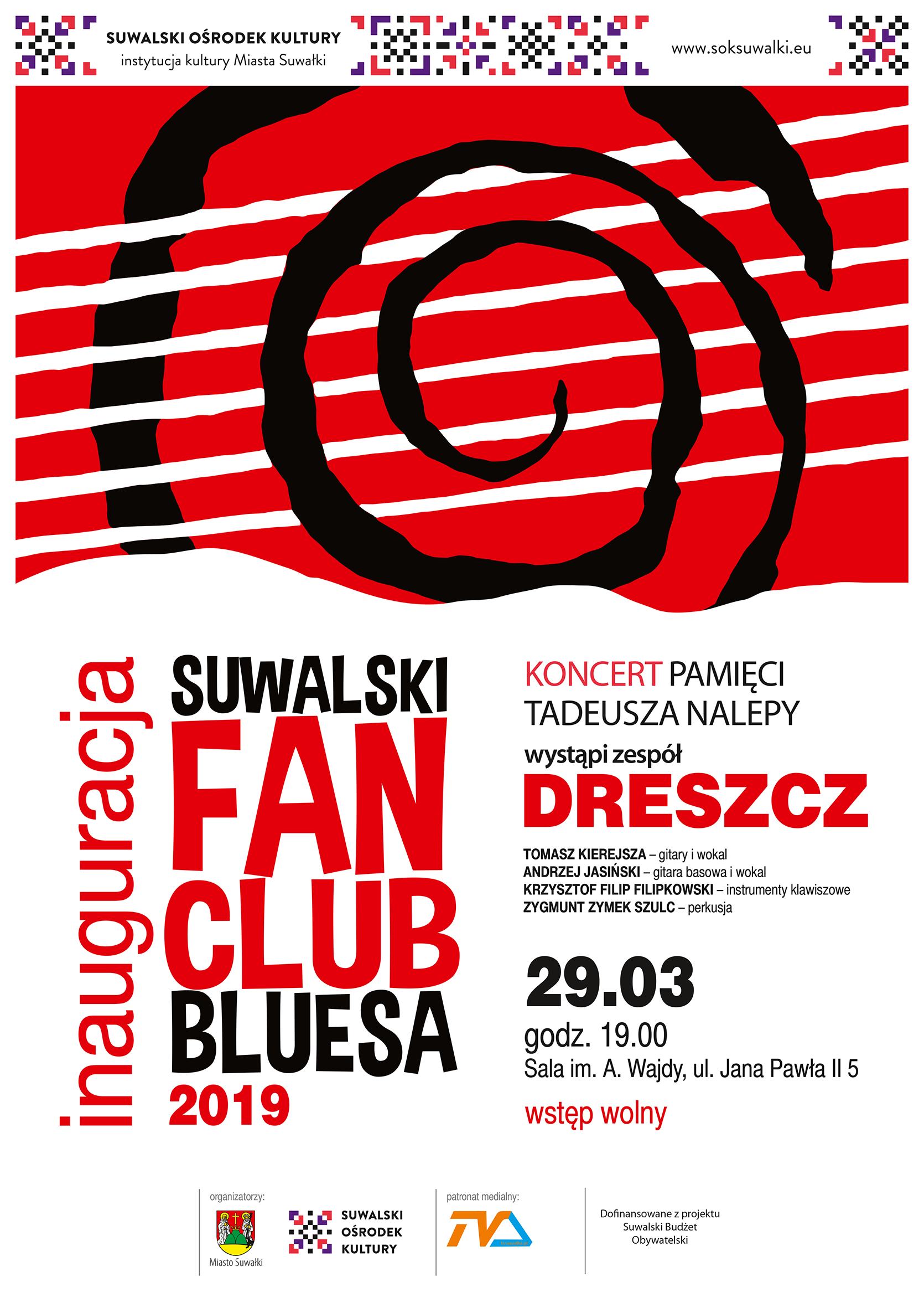 Koncertem pamięci Tadeusza Nalepy, popularnego kompozytora, gitarzysty, wokalisty, harmonijkarza i autora tekstów, założyciela pionierskiej dla polskiego bluesa grupy „Breakout”, w wykonaniu znanego suwalskiego zespołu DRESZCZ, zainauguruje swoją tegoroczną działalność Suwalski Fan Club Bluesa.