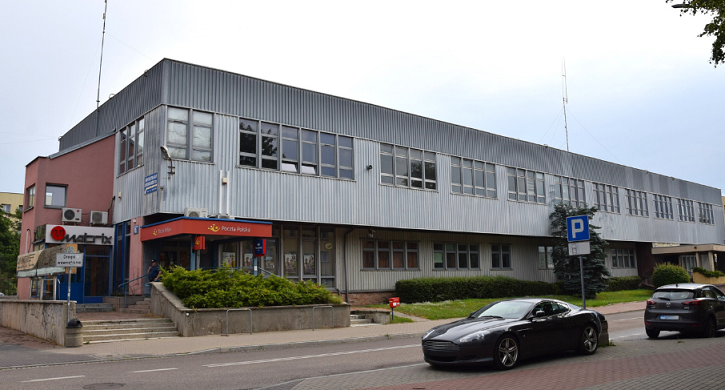 Wybudowany w koÅ„cu lat 70. ubiegÅ‚ego wieku gmach byÅ‚ siedzibÄ… oddziaÅ‚u Narodowego Banku Polskiego. Potem mieÅ›ciÅ‚y siÄ™ w nim różne urzÄ™dy i instytucje, a także placówka Poczty Polskiej.