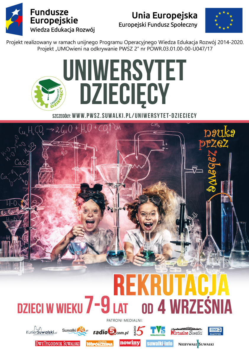 SzczegóÅ‚y rekrutacji można znaleźć tu: www.pwsz.suwalki.pl/uniwersytet-dzieciecy/rekrutacja/