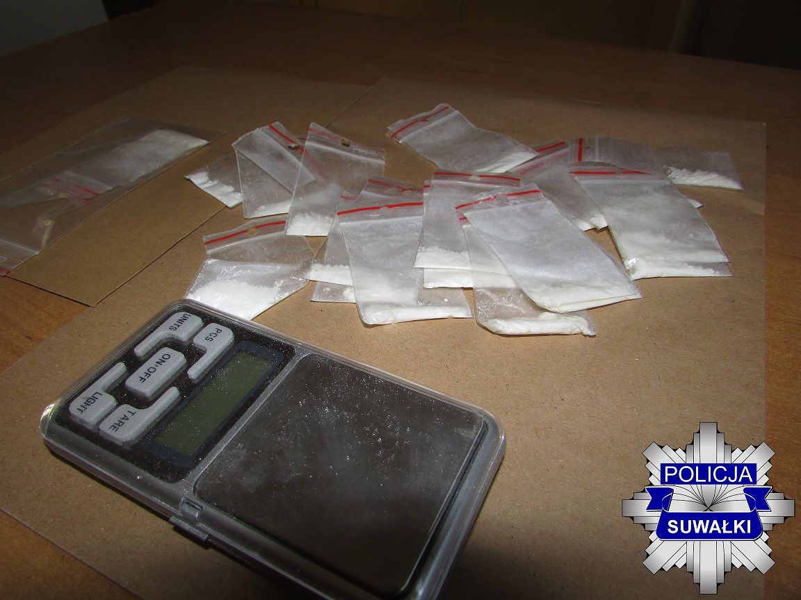 - W trakcie legitymowania jeden z młodzieńców sprawiał wrażenie wyraźnie zdenerwowanego. Już po chwili okazało się, dlaczego. W kieszeni spodni niespełna 18- letniego chłopaka policjanci ujawnili 22 torebki foliowe z zawartością białego proszku oraz wagę. W tym momencie inny z chłopaków wyrzucił coś na ziemię. Okazało się, że to dwie torebki foliowe, także z zawartością białego proszku – informuje aspirant Eliza Sawko, oficer prasowy policji w Suwałkach.