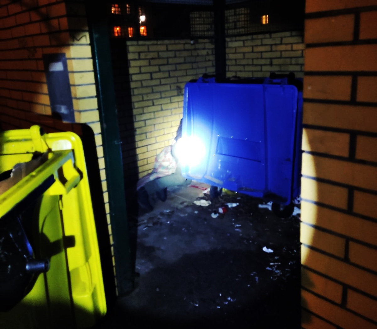 Zaniepokojony mieszkaniec zaznaczył na Krajowej Mapie Zagrożeń Bezpieczeństwa, że w jednej z wiat śmietnikowych, w centrum Suwałk noce spędza mężczyzna o kulach. Z uwagi na niskie temperatury, spadające poniżej zera sprawą zajęli się natychmiast dzielnicowi.