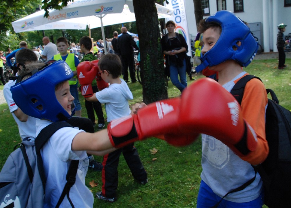 Rowerzyści tych uwag nie słyszeli i chyba dobrze się stało. W parku dzieci mogły pomalować twarze, spróbować sowich sił w pojedynkach z suwalskimi pięściarzami, a dorośli zmierzyć ciśnienie i poziom cukru we krwi, sprawdzić stan techniczny swoich „rumaków”, oznaczyć je i wpisać do policyjnych rejestrów, co w przypadku, nie daj Boże, kradzieży, pomoże w odnalezieniu roweru. Był też nagrody dla uczestników rajdu. A że dopisały pogoda i humory, zabawa była zacna. Nawet potknięcia, takiej jak to 5-letniej Zuzi (na zdjęciu w galerii), nawet na poszkodowanej nie robiły wrażenia.