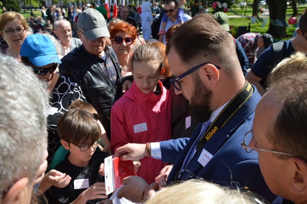 Od ładnych paru lat w Dniu Flagi Rzeczypospolitej Polskiej władze samorządowe rozdają te symbole narodowe. Do tej pory prezydent Suwałk czynił to na dziedzińcu ratusza, w tym roku wybrał plac w Parku Konstytucji 3 Maja.