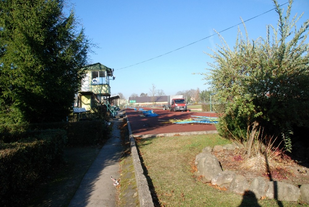 c/ skocznia do skoku wzwyż - na południowym zakolu bieżni okrężnej, z zeskokiem 4x6mx0,7m