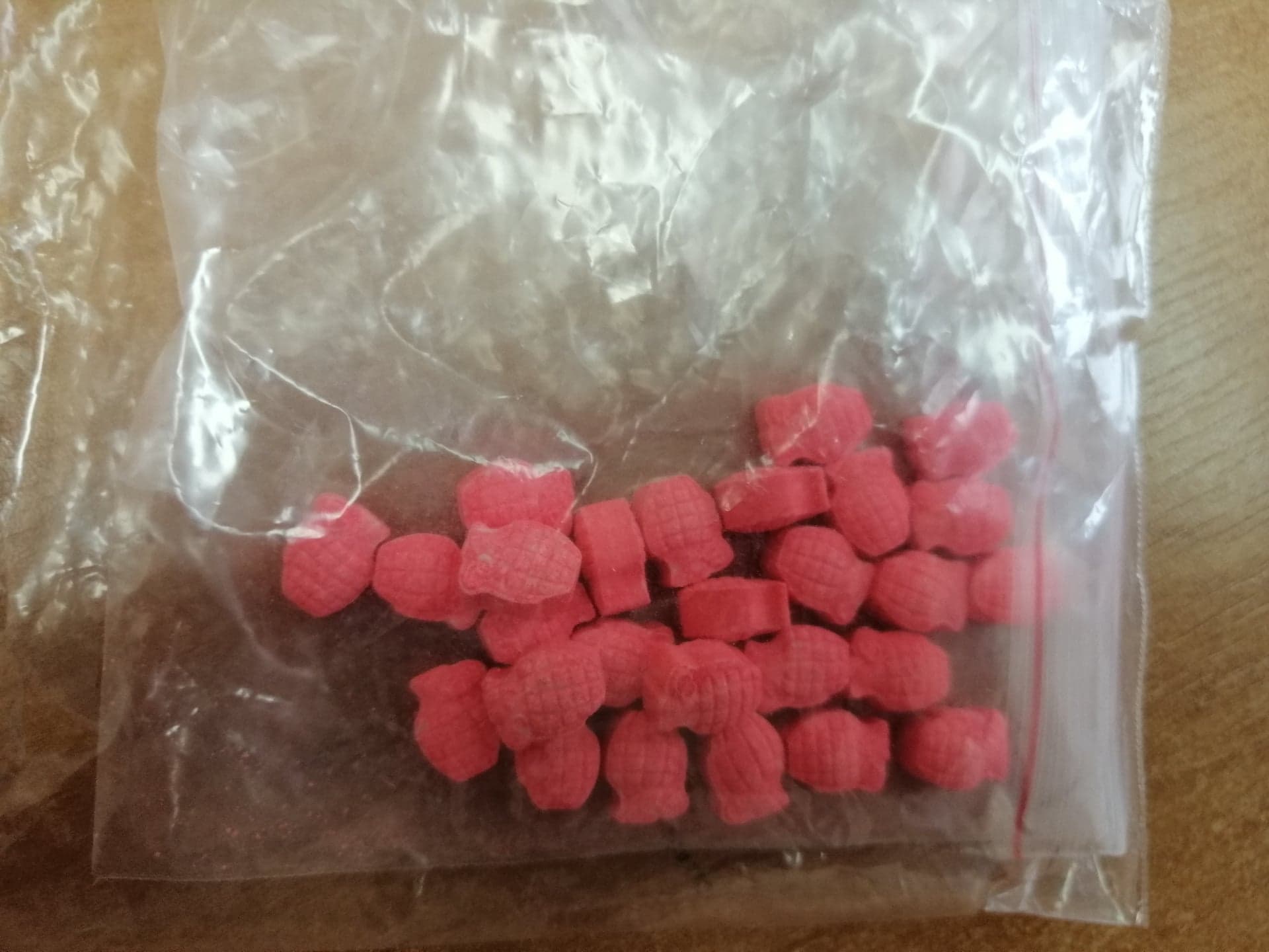 Z informacji jakie posiadali funkcjonariusze wynikaÅ‚o, że mieszkajÄ…cy tam mężczyzna może posiadać Å›rodki odurzajÄ…ce. W wyniku podjÄ™tych czynnoÅ›ci kryminalni zabezpieczyli 27 tabletek koloru różowego w ksztaÅ‚cie granata. WstÄ™pne badanie narkotesterem wykazaÅ‚o, że zabezpieczone substancje to ekstazy.