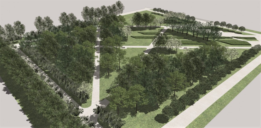 W ramach projektu przewidziano aleje parkowe o szerokoÅ›ci 3 metrów z wydzielonymi, utwardzonymi miejscami na Å‚awki, stojaki rowerowe i kosze. Planuje siÄ™ również intensywne nasadzenia zieleni, w tym zieleÅ„ izolacyjnÄ… wzdÅ‚uż granicy z terenami policji oraz regularne szpalery drzew o pokroju kulistym wzdÅ‚uż ulic. ZieleÅ„ wysoka i niska, w tym krzewy, bÄ™dzie miaÅ‚a charakter ozdobny i nieregularny.