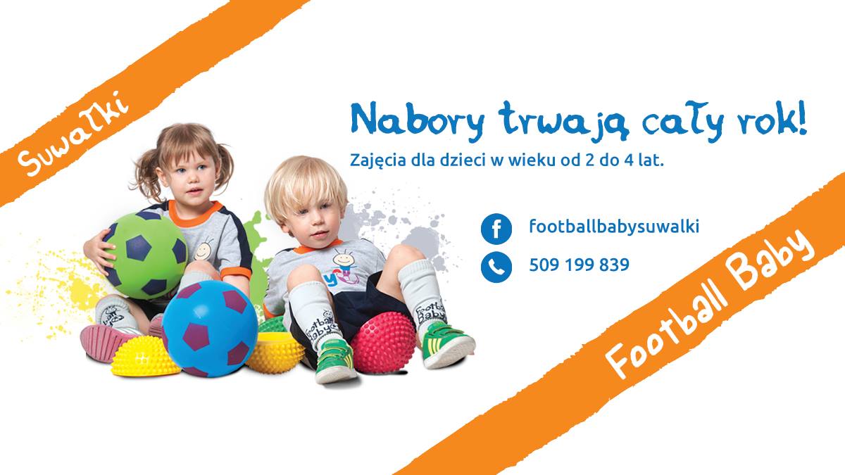 Football Baby w naszym mieÅ›cie dziaÅ‚a od października, dwie 10-osobowe grupy 2-3-4 latków wraz z mamami lub tatusiami raz w tygodniu spotykajÄ… siÄ™ obecnie w maÅ‚ej hali OSiR i sali ZespoÅ‚u SzkóÅ‚ nr 6 w SuwaÅ‚kach.