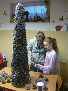 Dzieci ze świetlicy wykonują świąteczne ozdoby, wianki, piękne choinki, a nawet ciasta, które następnie sprzedają na kiermaszach. Chętni mogą kupić na miejscu bożonarodzeniowe wianki i choinki.
