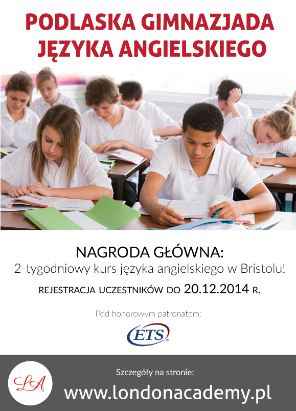 20 stycznia 2015 r. odbędzie się etap szkolny Podlaskiej Gimnazjady Języka Angielskiego. Nagrodą główną w turnieju jest 2-tygodniowy kurs języka angielskiego w Bristolu.