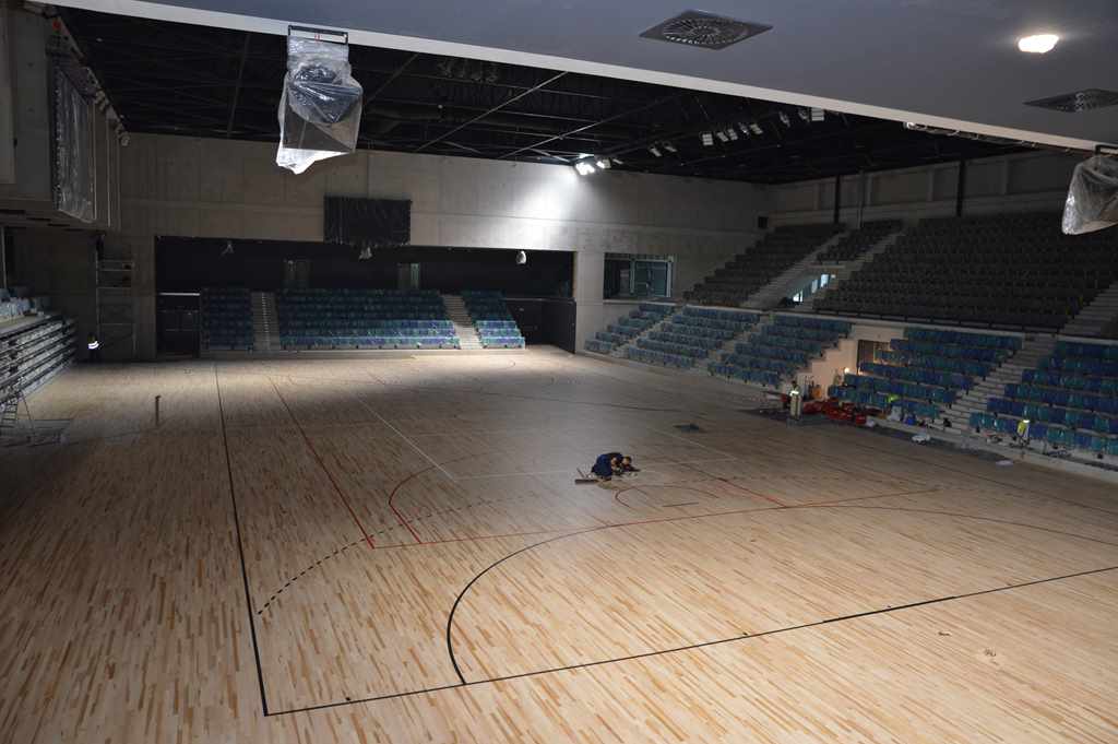 Opublikowane zdjÄ™cia – oprócz krzÄ…taniny ekip wykoÅ„czeniowych – pokazujÄ… również gotowy parkiet sportowy na dużej hali oraz zamontowane trybuny staÅ‚e i skÅ‚adane (elektrycznie).