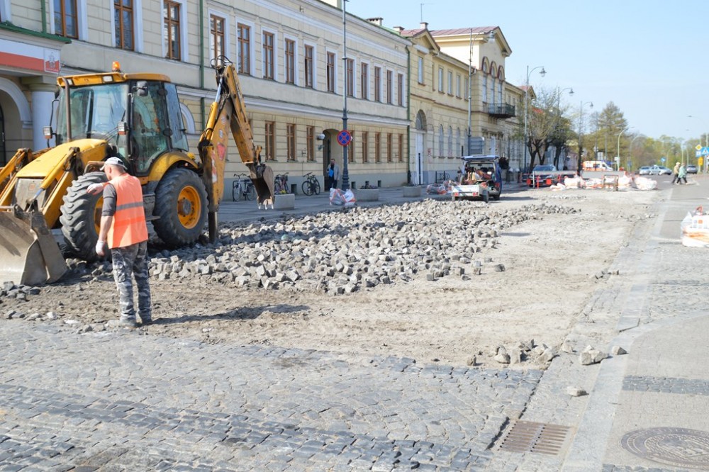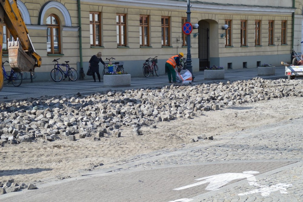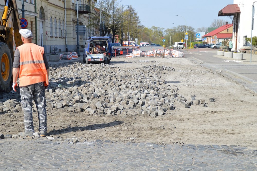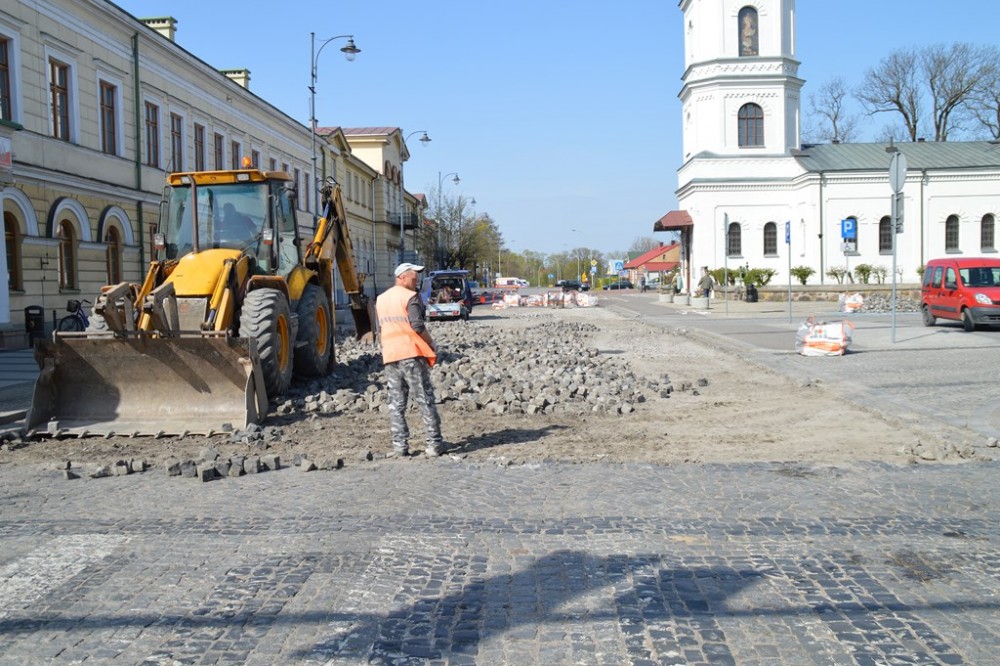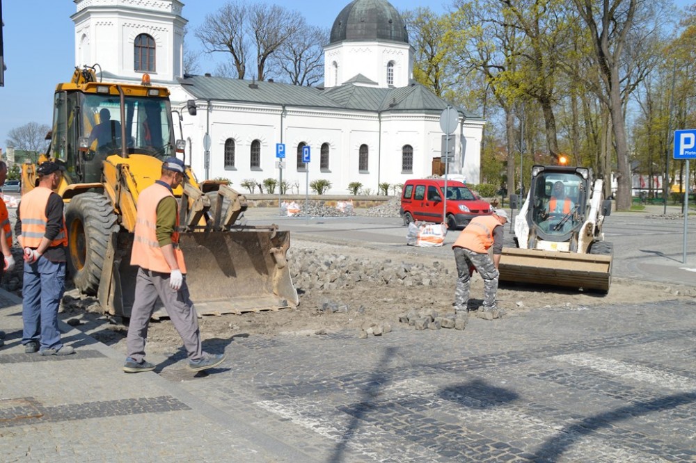 Trzy dni temu rozpoczęła się gruntowna modernizacja skrzyżowania ulic Kościuszki, Waryńskiego i Mickiewicza. Postęp prac z okien swojego gabinetu obserwuje prezydent Suwałk. To daje niemal pewność, że skrzyżowanie przy ratuszu zostanie otwarte zgodnie z planem, na początku czerwca. Roboty związane z wymianą podłoża i innym sposobem ułożenia granitowej kostki przeniosą się potem na ulicę Kościuszki wzdłuż Parku Konstytucji 3 Maja i będą już dużo mniej uciążliwe.