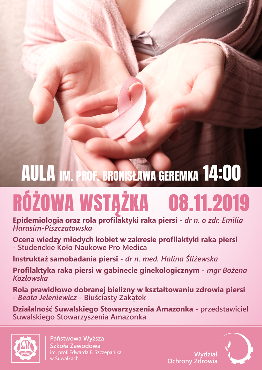 Wydział Ochrony Zdrowia oraz koło naukowe Pro Medica Państwowej Wyższej Szkoły Zawodowej w Suwałkach zapraszają na wyjątkową konferencję akcję dotyczącą profilaktyki badania piersi. Spotkanie będzie mieć charakter otwarty. Mogą na nie przyjść wszyscy chętni.