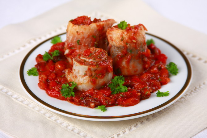 - Z koncentratu, oleju, marynowanej papryki i natki pietruszki przyrządź sos.