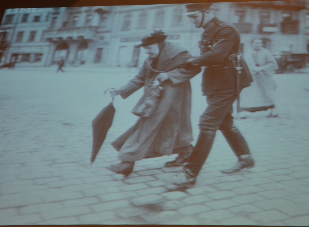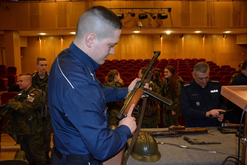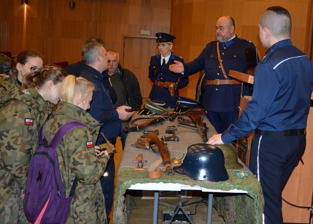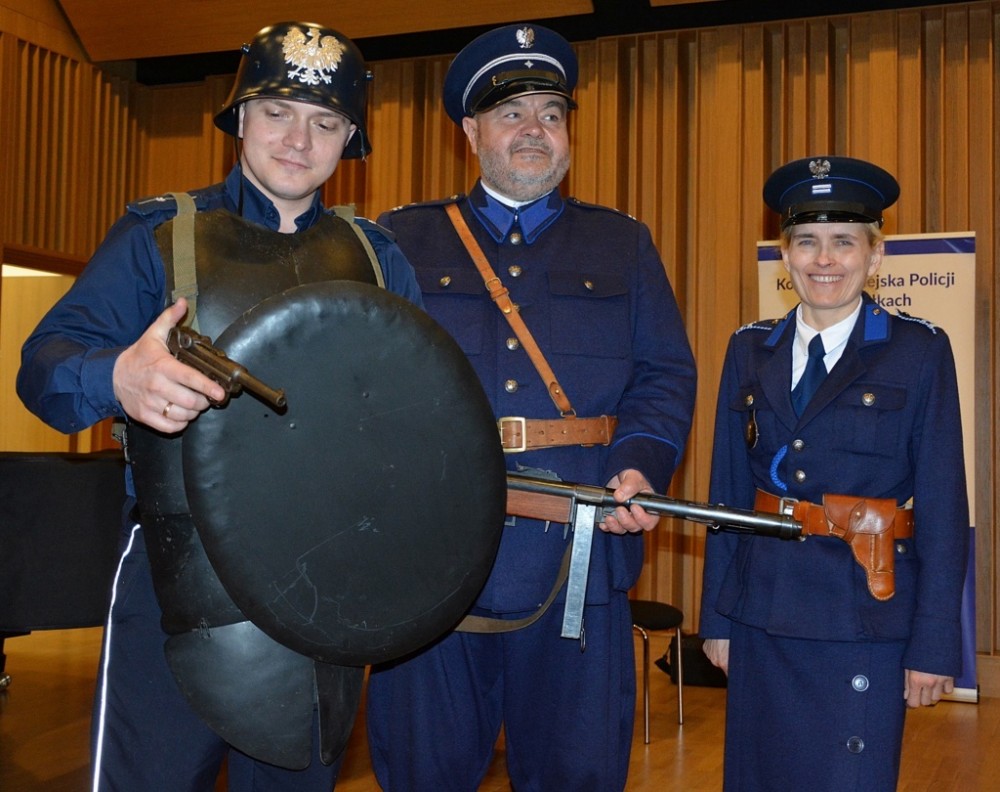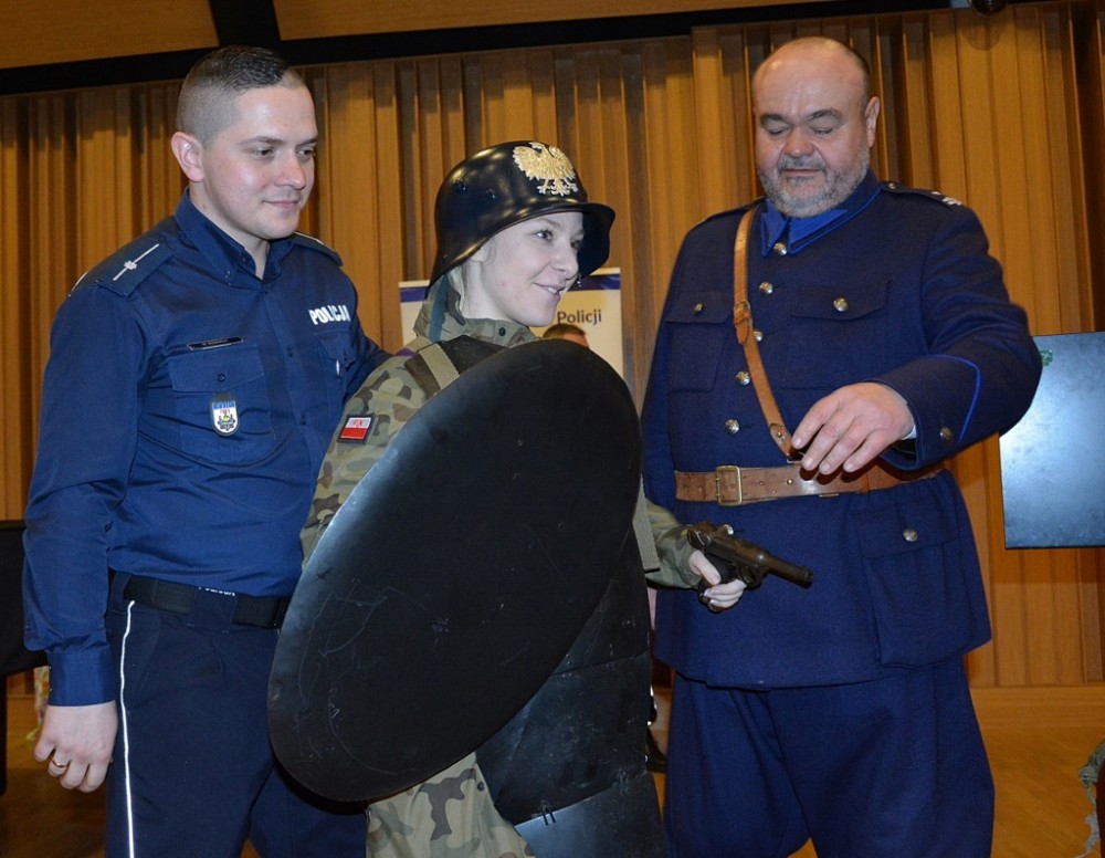 W dalszej kolejnoÅ›ci wystÄ…pili mÅ‚odszy aspirant Mateusz Biziewski (pasjonat i kolekcjoner broni) wraz z panem Cezarym Wonsewiczem (rekonstruktor historyczny), którzy opowiedzieli o uzbrojeniu, wyposażeniu i umundurowaniu Policji PaÅ„stwowej, omawiajÄ…c dodatkowo fotografie ze zbiorów Narodowego Archiwum Cyfrowego. CaÅ‚ość wykÅ‚adu uÅ›wietniÅ‚a obecność małżeÅ„stwa Anny i Cezarego Wonsewiczów ubranych w mundury Policji PaÅ„stwowej.