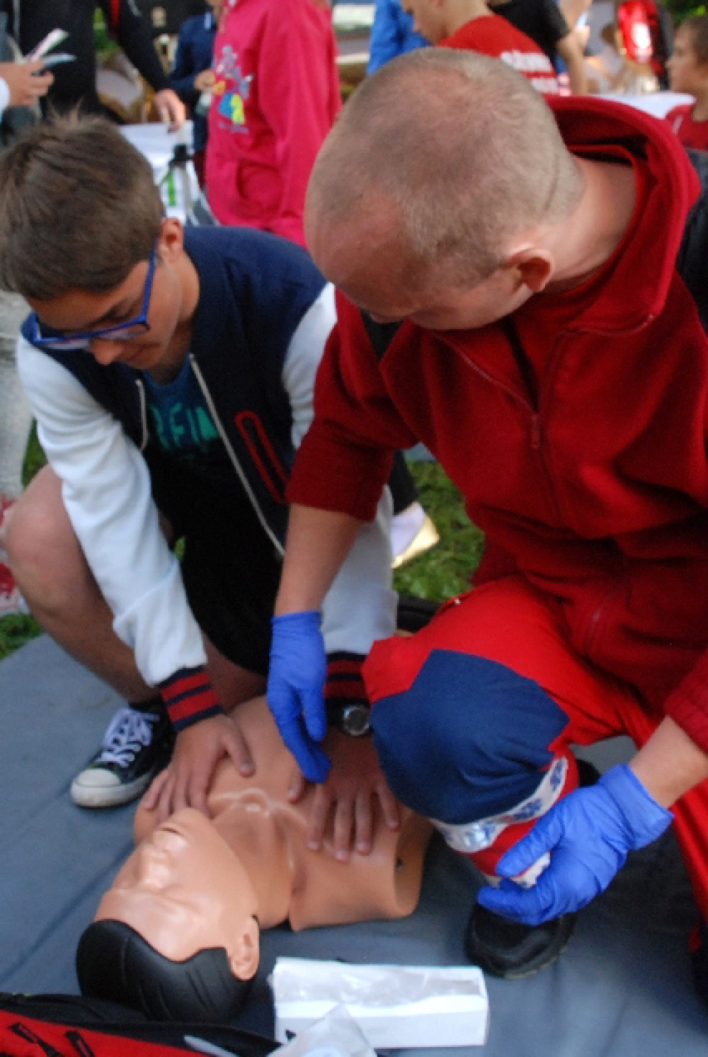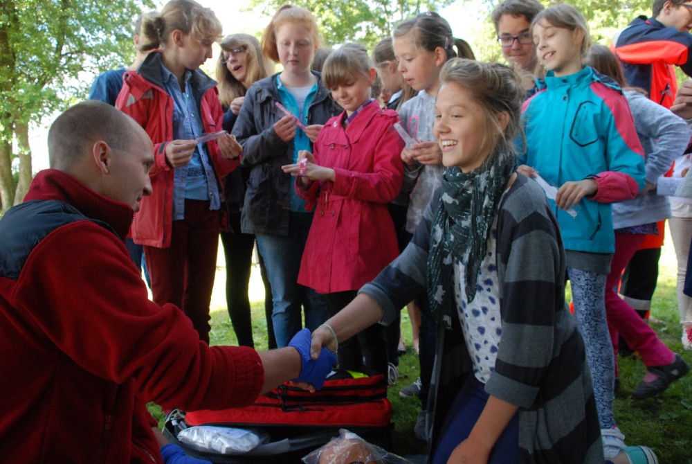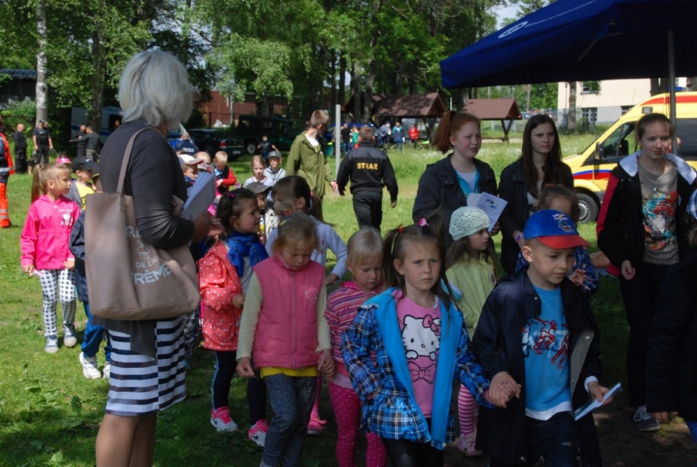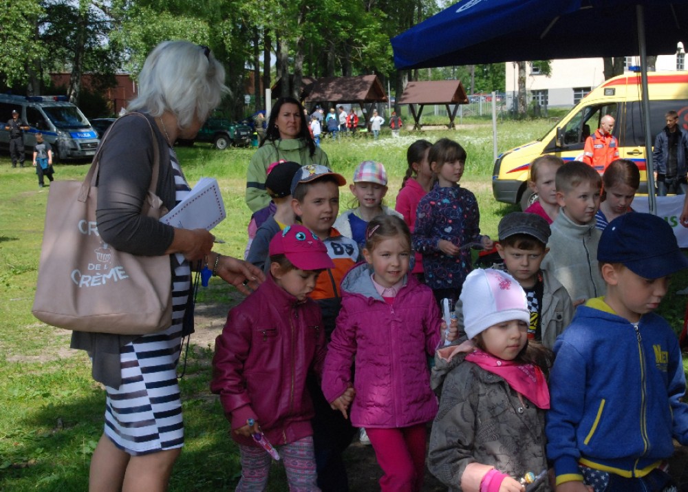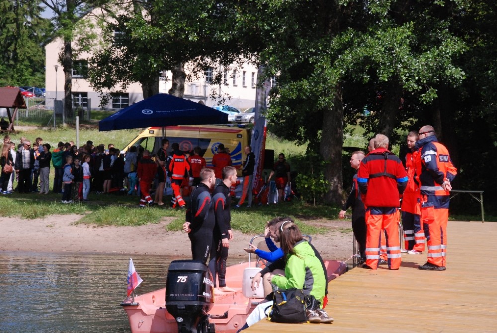 Uczniowie i przedszkolacy oraz mieszkańcy Starego Folwarku na plaży nad jez. Wigry mieli okazję obejrzeć pokazy ratowania osoby tonącej i udzielania jej pierwszej pomocy przedmedycznej i medycznej, sprzętu do ratownictwa wodnego i medycznego oraz praktycznego jego wykorzystania, pokaz tresury i wykorzystania policyjnych psów służbowych.