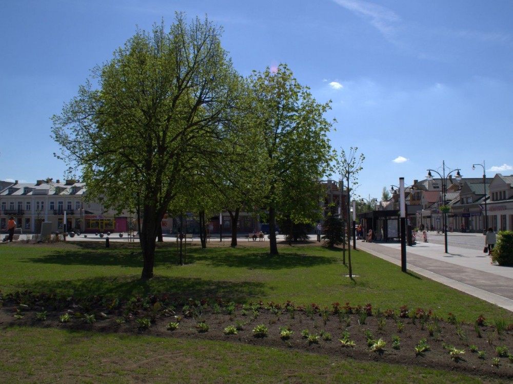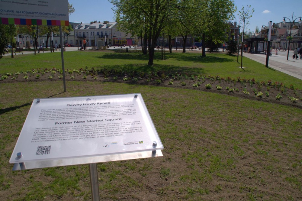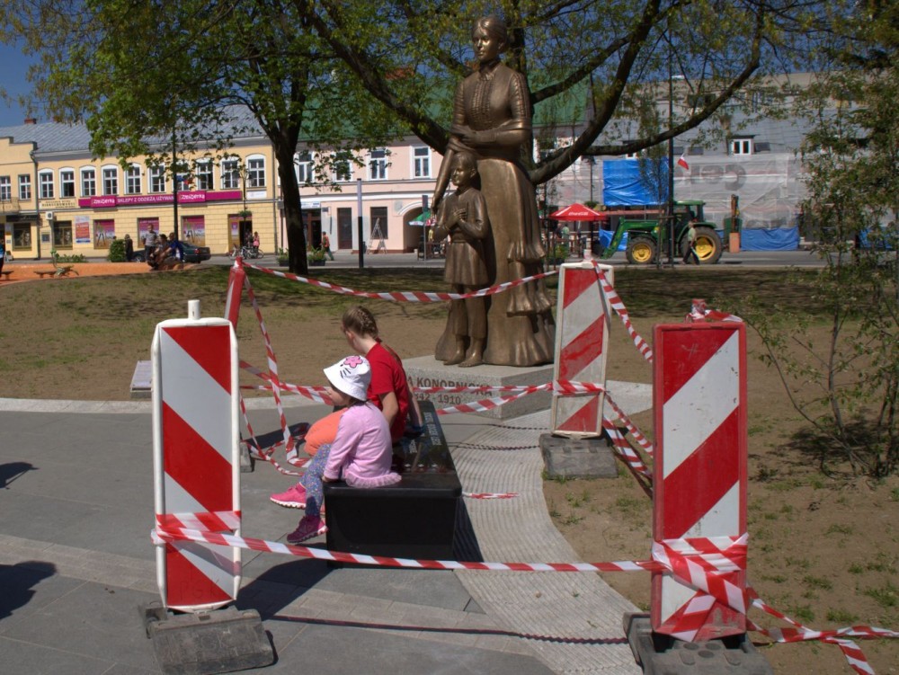Kiedyś był tam targ, gdzie kupić można było konia lub krowę. Później rynek obsadzono drzewami, nazwano parkiem i nadano mu imię Mari Konopnickiej. W dziesiątą rocznicę przystąpienia do Unii Europejskiej park zamieni się w plac. Jedynym niezmiennym elementem pozostał tylko pomnik poetki.