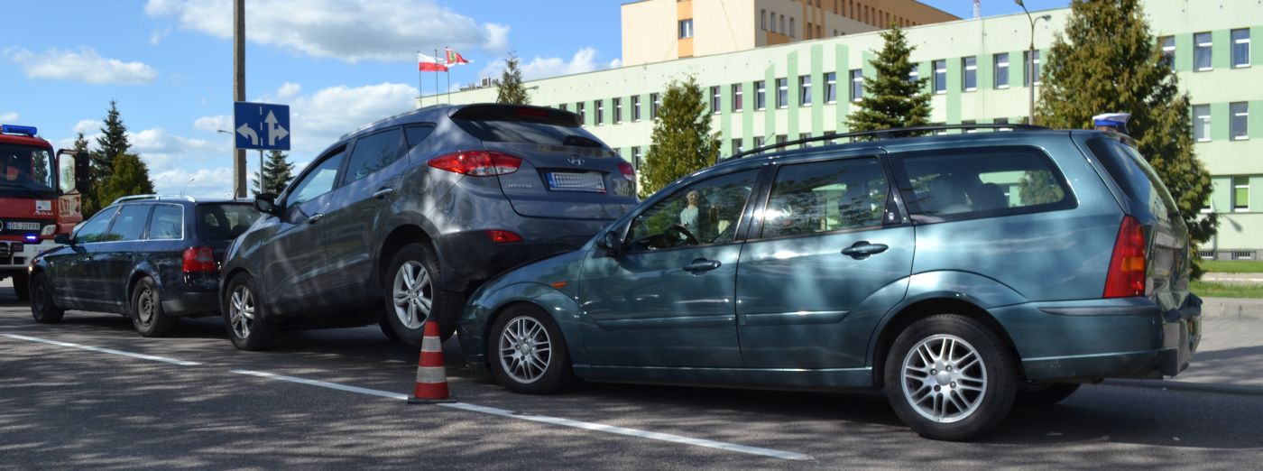 Mazda z impetem uderzyła w forda. Ten wbił się pod hyundaia, podnosząc tył auta tak, że zajęło całą pokrywę od silnika. Jako ostatnie ucierpiało audi.