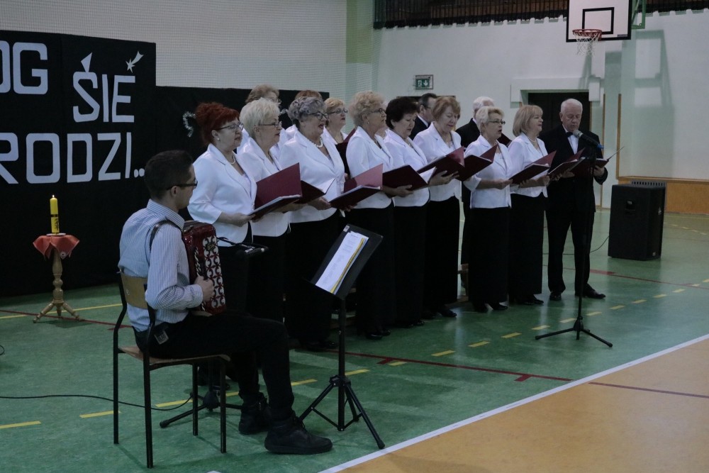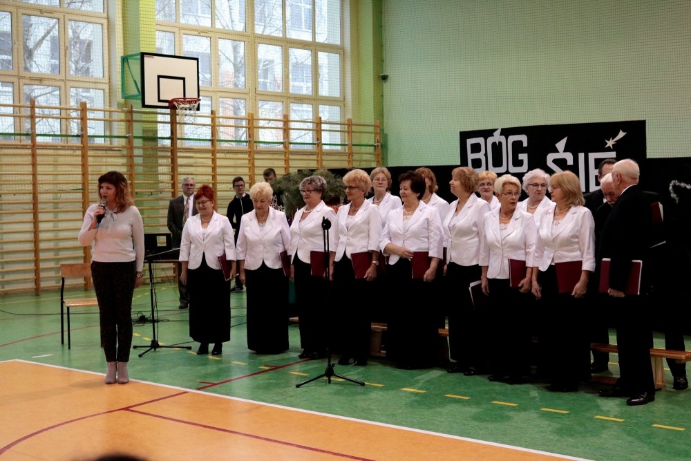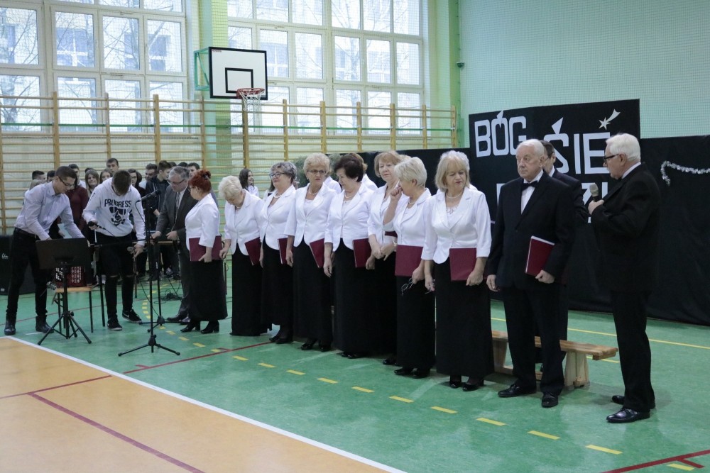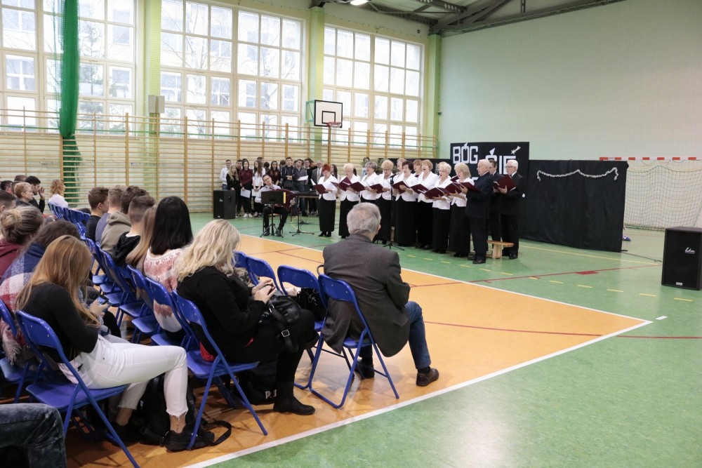 Uczniowie wraz z nauczycielami spotykali się w hali sportowej, by razem z suwalskim chórem seniora - Zespołem „Złota Jesień”, wspólnie zaśpiewać kolędy. Młodzież w wieku 16 – 20 lat, pedagodzy oraz emeryci, działający przy Stowarzyszeniu Uniwersytet III wieku w Suwałkach, symbolicznie usiedli przy jednym świątecznym stole.