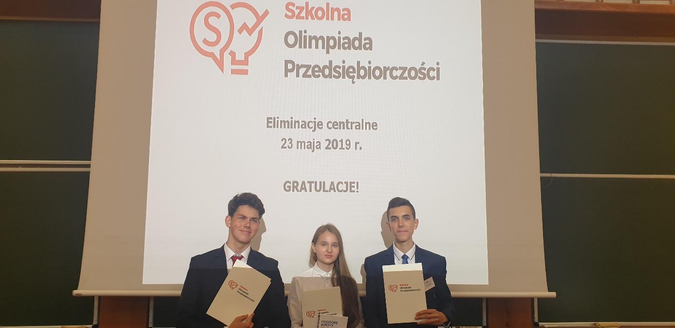 Podczas eliminacji centralnych V Szkolnej Olimpiady PrzedsiÄ™biorczoÅ›ci, które odbyÅ‚y siÄ™ w Szkole GÅ‚ównej – Handlowej w Warszawie, Igor Przybylak oraz Cezary Pendras zdobyli tytuÅ‚ laureata, a Katarzyna Dyczewska – tytuÅ‚ finalisty.