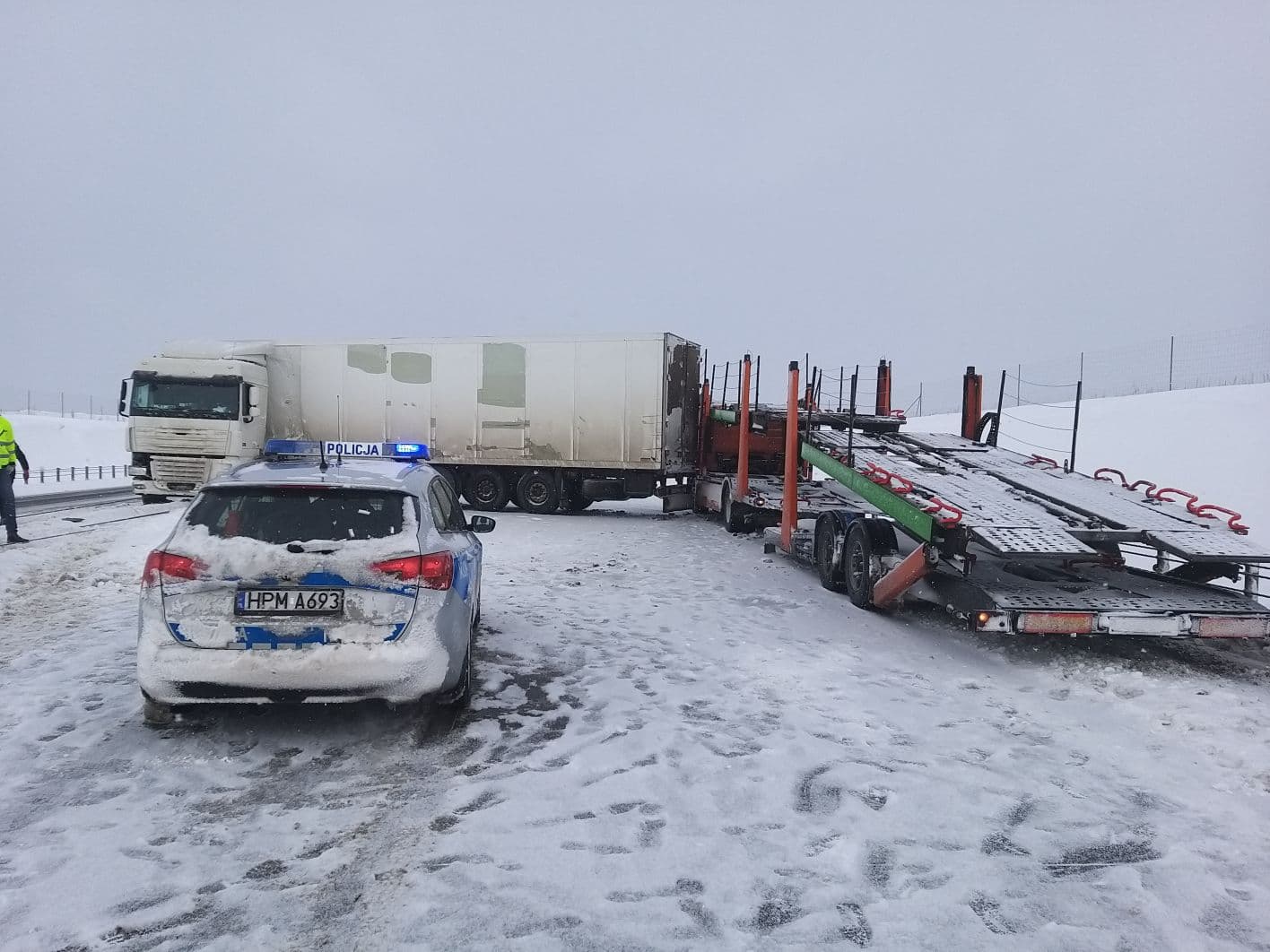Ciężarówki zablokowaÅ‚y oba pasy jezdni. Ruch na S-61 w kierunku Raczek jest caÅ‚kowicie zablokowany. Na miejscu pracujÄ… sÅ‚użby. Kierowcy proszeni sÄ… o korzystanie z objazdów.