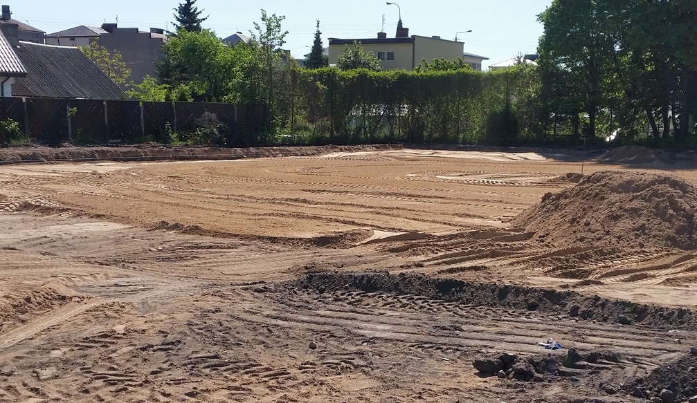 Z terenu prac wyciÄ™to już drzewa oraz zdemontowano stare ogrodzenie. TrwajÄ… prace zwiÄ…zane z wykonaniem wÅ‚aÅ›ciwej podbudowy dla kortów. Na teren zwieziono już odpowiedni żwir.