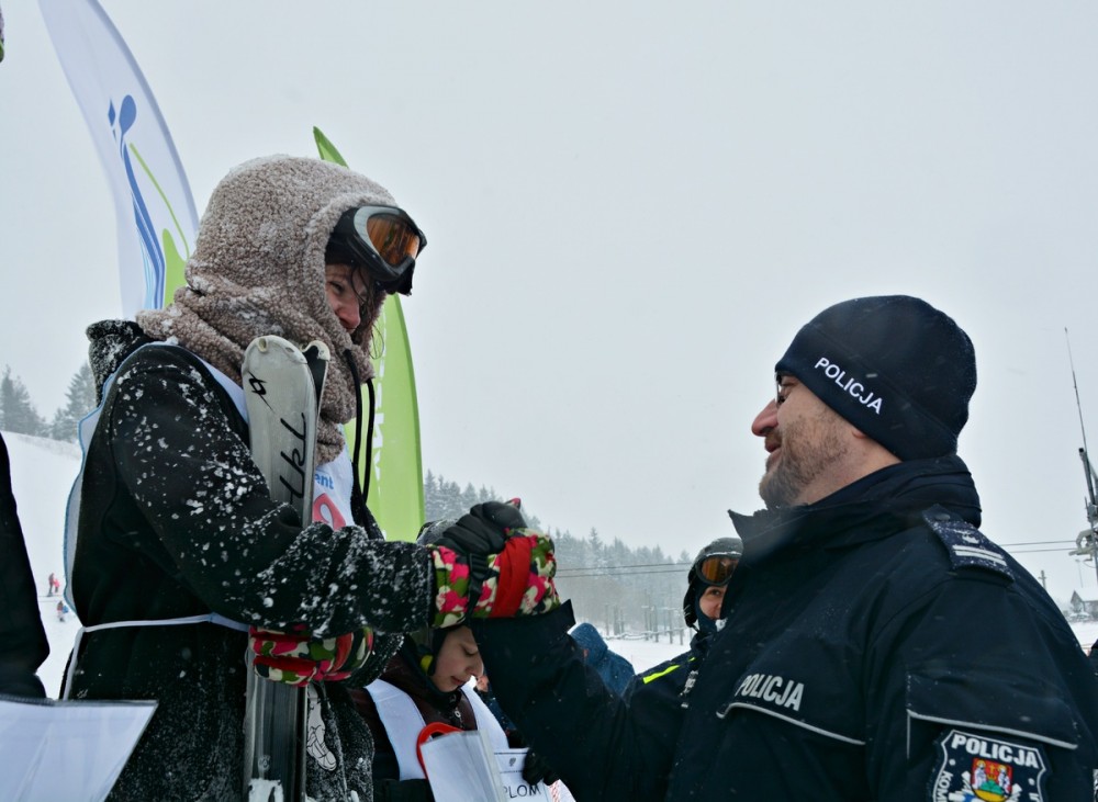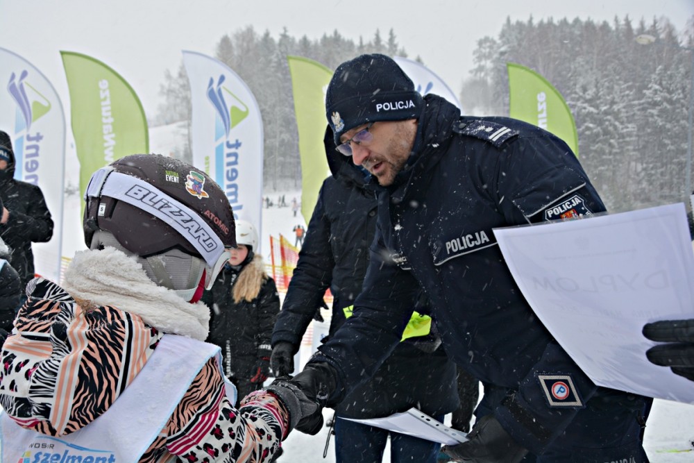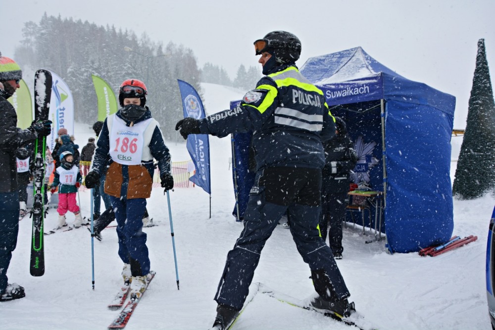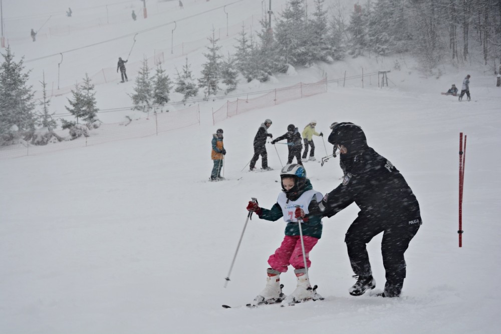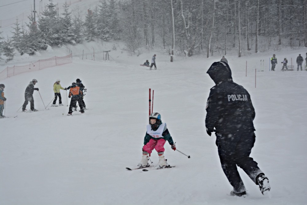 Z ogromnym zainteresowaniem spotkał się "Slalom Gigant dla najmłodszych". Wzięły w nim udział dzieci do 14 roku życia. Dla wielu z nich było to pierwsze spotkanie z nartami, dlatego też policjanci przed rozpoczęciem zawodów przeprowadzili rozgrzewkę i krótki instruktarz o podstawowych zasadach bezpieczeństwa na stoku. Dodatkowo policyjni narciarze przećwiczyli ze wszystkimi chętnymi techniki jazdy na nartach. Przedsięwzięcie cieszyło się dużą popularnością. Było przy nim dużo zabawy i śmiechu.