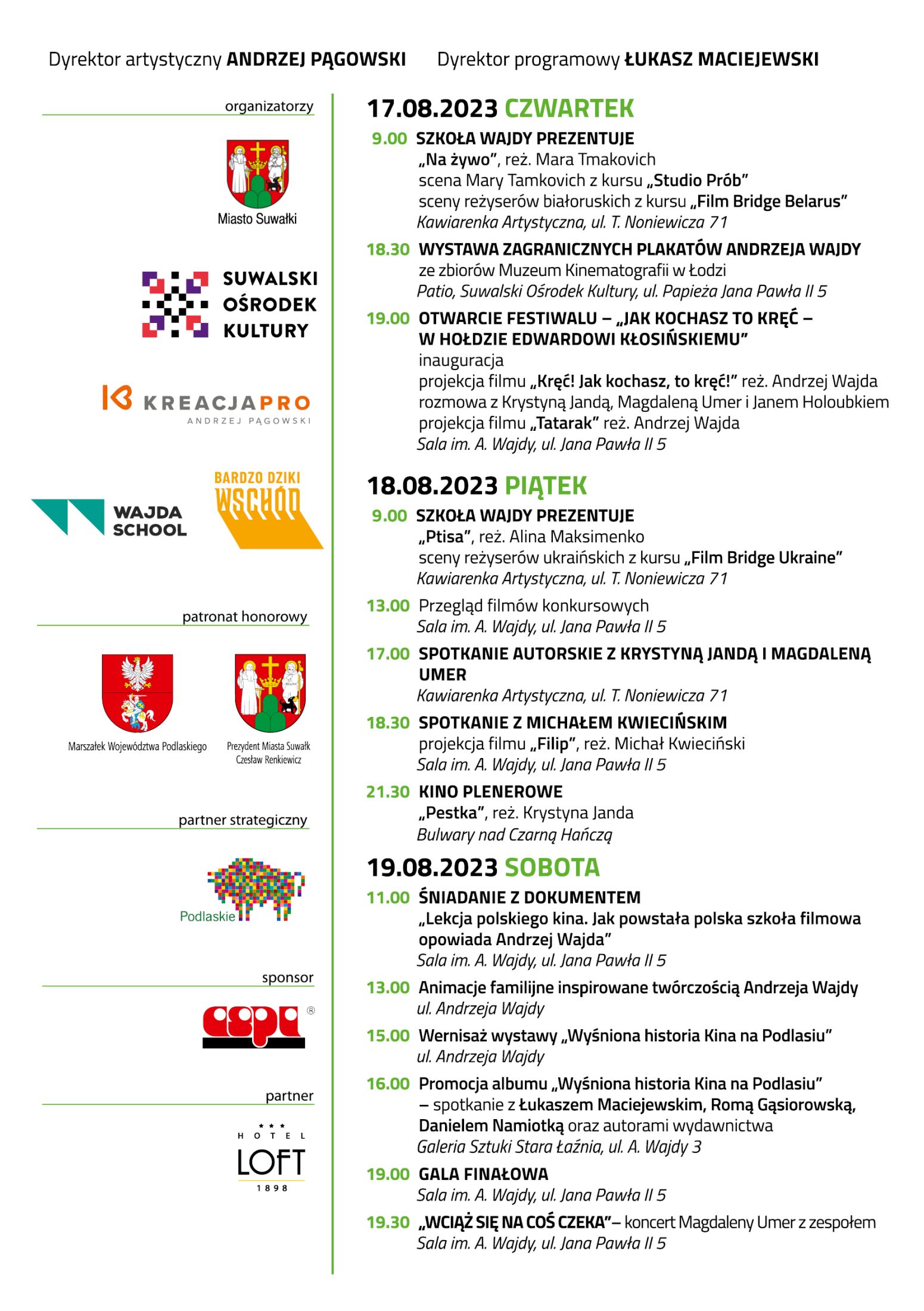 Strategicznym Partnerem jest Marszałek Województwa Podlaskiego, który również objął festiwal swoim patronatem honorowym.