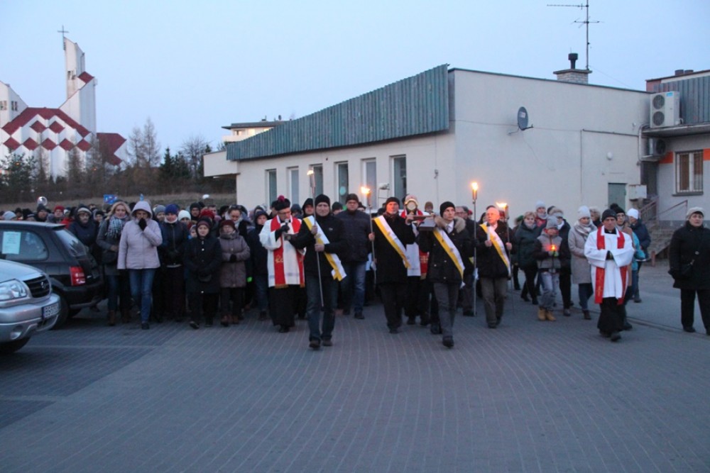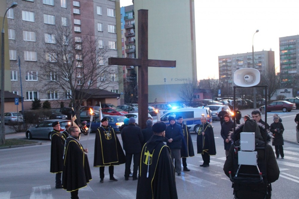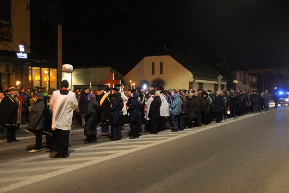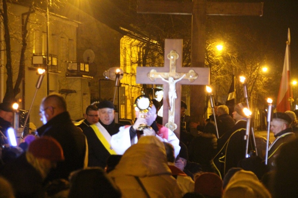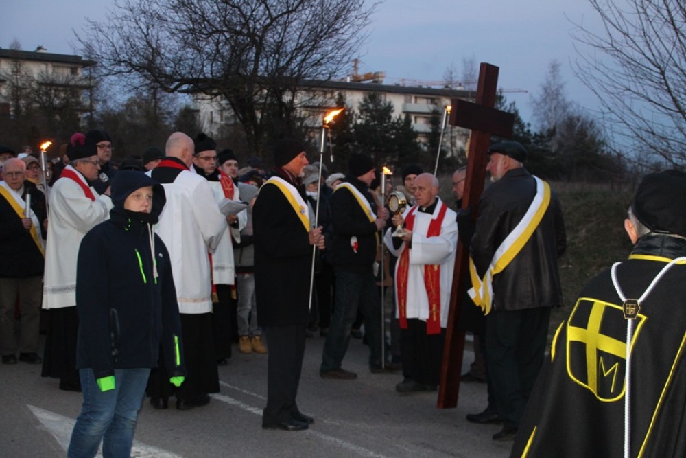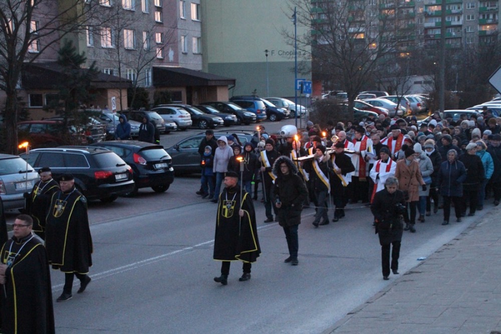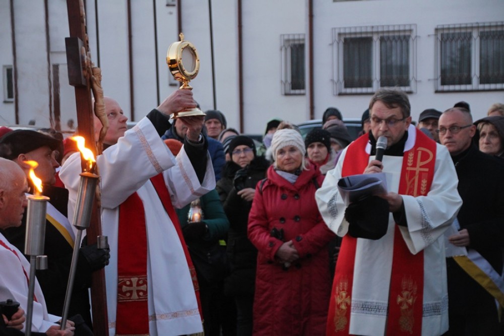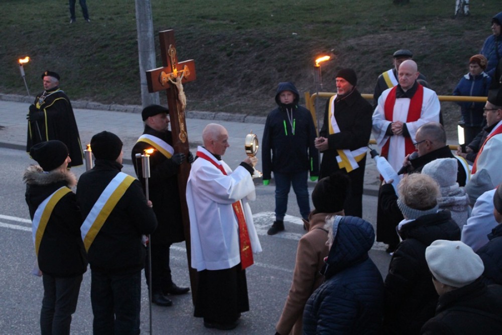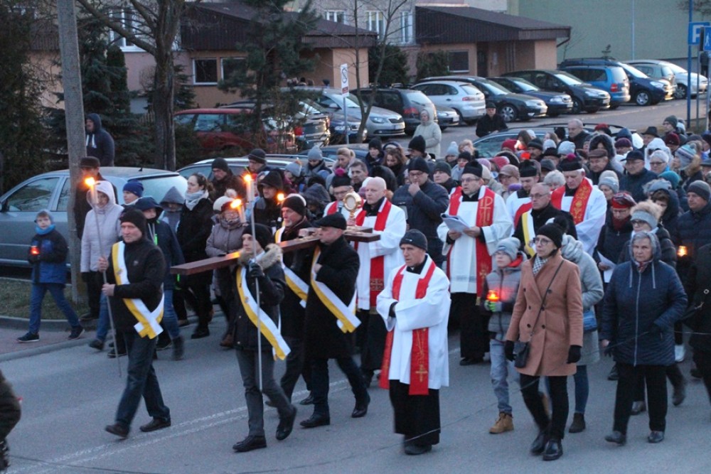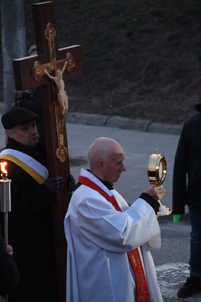 Wierni przeszli ulicami Chopina, MÅ‚ynarskiego, NowomiejskÄ…, Jana PawÅ‚a II, Dwernickiego, KoÅ›ciuszki, PiÅ‚sudskiego, Hamerszmita do KoÅ›cioÅ‚a NajÅ›wiÄ™tszego Serca Pana Jezusa, gdzie rozważali 14 stacji MÄ™ki PaÅ„skiej. Oprócz dwóch krzyży, w tym Jerozolimskiego, niesiony byÅ‚ również NajÅ›wiÄ™tszy Sakrament.