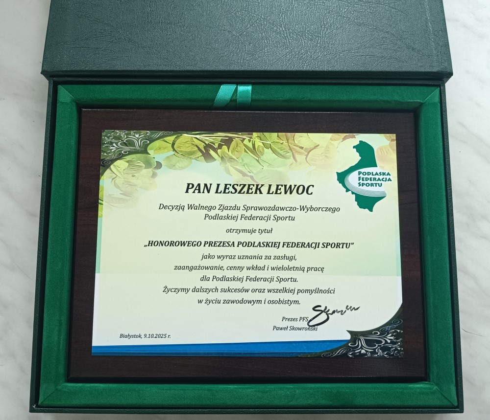 Podczas Walnego Zjazdu Podlaskiej Federacji Sportu, który odbył się 9 października, uhonorowano Leszka Lewoca tytułem Honorowego Prezesa Podlaskiej Federacji Sportu.