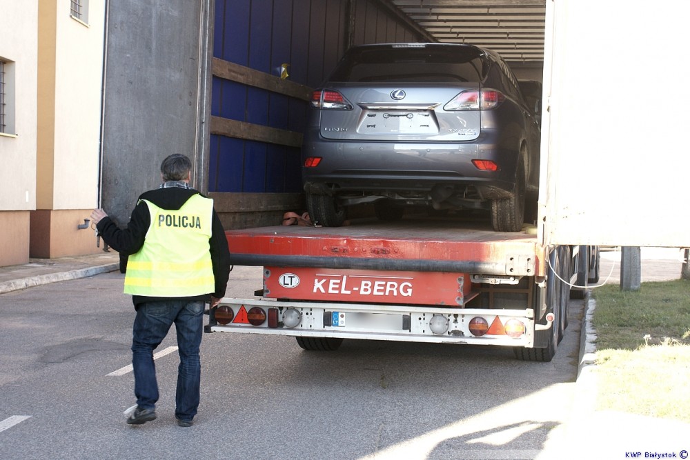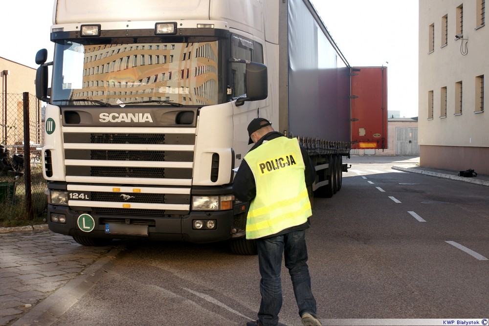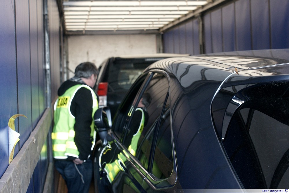 Policjanci Wydziału Patrolowo-Interwencyjnego z Komendy Miejskiej Policji w Suwałkach zatrzymali we wtorek, około 21.00 do kontroli drogowej jadący ul. Utrata w kierunku granicy ciągnik siodłowy z naczepą. Za kierownicą ciężarówki zasiadał 54-letni obywatel Litwy. Z dokumentów przewozowych wynikało, że zmierzał on z Holandii na Łotwę. Kierowca twierdził, że w naczepie przewozi dwa samochody.