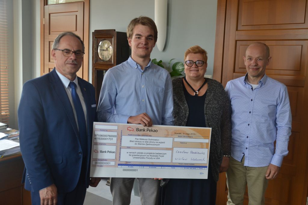 - Historia jest bardzo ciekawa. Wybitnie uzdolniony Suwalczanin, który osiÄ…gnÄ…Å‚ sukces w badaniach nad falami grawitacyjnymi nie zapomina o swoich korzeniach i chce wesprzeć mÅ‚odego czÅ‚owieka w rozwoju jego zainteresowaÅ„. Dlatego też postanowiÅ‚em, że pomożemy Mateuszowi w sfinansowaniu wyjazdu do Stanów Zjednoczonych, gdzie bÄ™dzie mógÅ‚ pod okiem ekspertów poznać wiele ciekawych rzeczy na temat fizyki oraz samych fal grawitacyjnych – powiedziaÅ‚ CzesÅ‚aw Renkiewicz, prezydent SuwaÅ‚k podczas spotkania z Mateuszem Sulimowiczem, jego tatÄ… i dyrektorem I LO DorotÄ… JabÅ‚oÅ„skÄ….