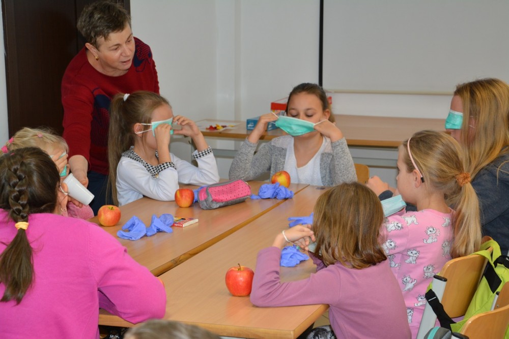 Dr Jolanta Gładczuk zabrała maluchy do centrum dowodzenia ludzkiego ciała. Dzieci pobudzały swoje zmysły rozpoznając smaki i zapachy bez patrzenia na nie, dowiedziały się w jaki sposób pracuje mózg człowieka, a nawet same musiały go zrekonstruować. Iwona Łazarska wspólnie z małymi studentami pobudzała natomiast wyobraźnię tworząc ekologiczne scenki.