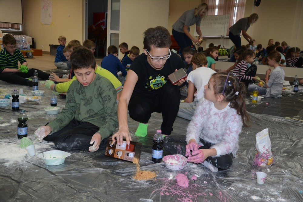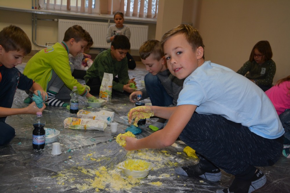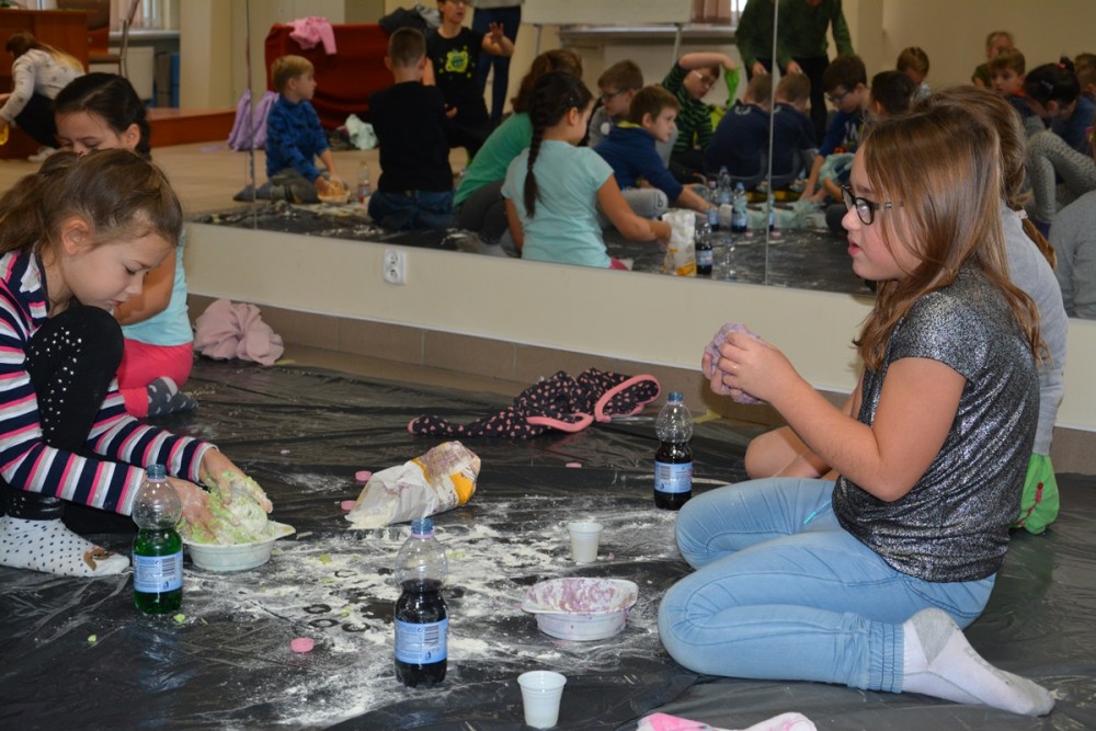 - Dzieci miały okazję obserwować, jak materiał, który jest suchy i sypki zmienia się w mokry i kleisty, a następnie w miękki i stały. Poznały sposoby przemiany materiałów i produktów, kształtując jednocześnie swoje zdolności manualne. Wokół było mokro, słodko-gorzko, brudno, lepko, pachnąco…, ale tak właśnie miało być. W taki sposób uwalniała się bowiem naturalna ekspresja twórcza – podkreśla Dawid Harasim, rzecznik prasowy Państwowej Wyższej Szkoły Zawodowej w Suwałkach.
