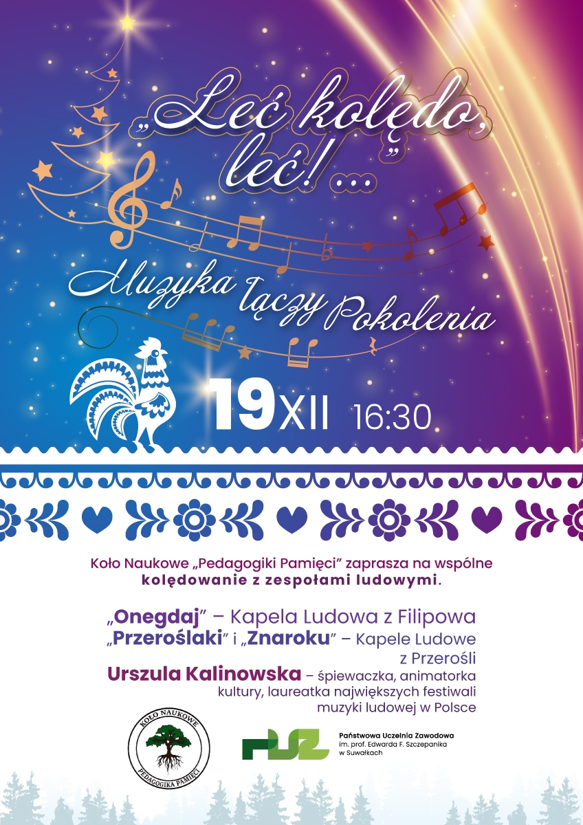 Na wspólne kolędowanie zaprasza Studenckie Koło Naukowe: "Pedagogika Pamięci". 19 grudnia o 16:30 w auli im. prof. Bronisława Geremka. Zaśpiewają m. in. regionalne zespoły ludowe.