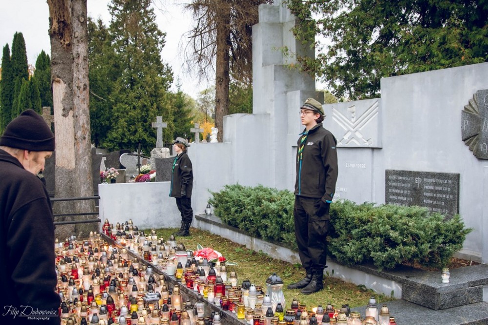 W Dzień Wszystkich Świętych ruszyliśmy na cmentarze. Odwiedzaliśmy groby bliskich, znajomych, a na cmentarzu przy ul. Bakałarzewskiej także mogiły żołnierzy, którzy ginęli za niepodległa Polskę.
