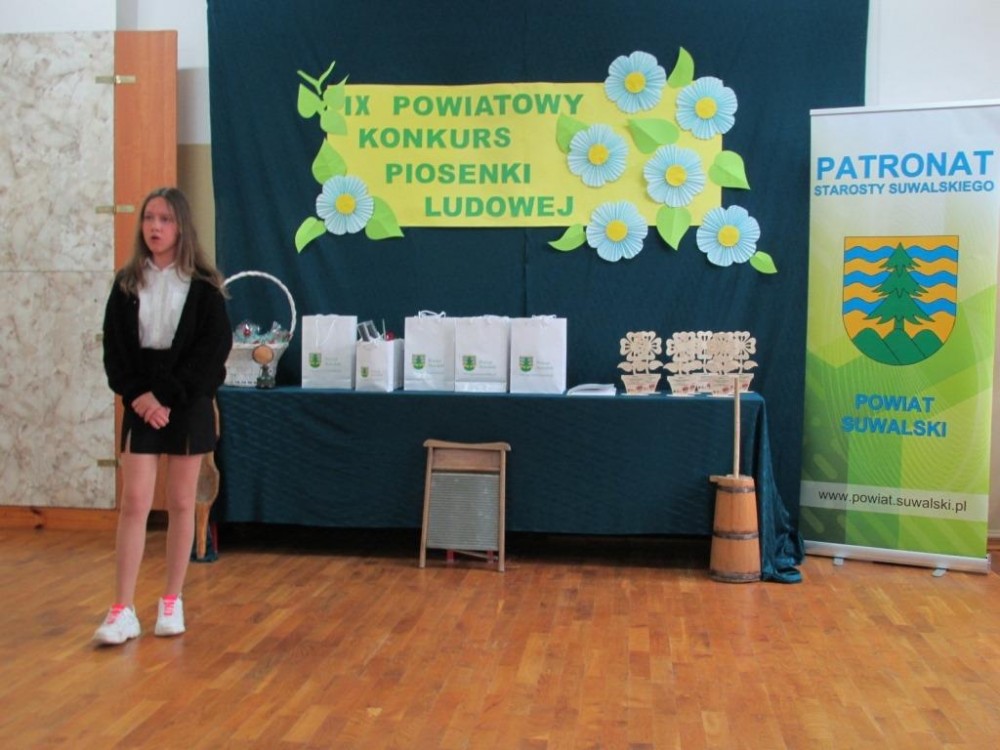 17 maja 2023 r. w Szkole Podstawowej nr 11 z Oddziałami Integracyjnymi w Suwałkach odbył się IX Powiatowy Konkurs Piosenki Ludowej pod honorowym patronatem Starosty Suwalskiego Witolda Kowalewskiego.