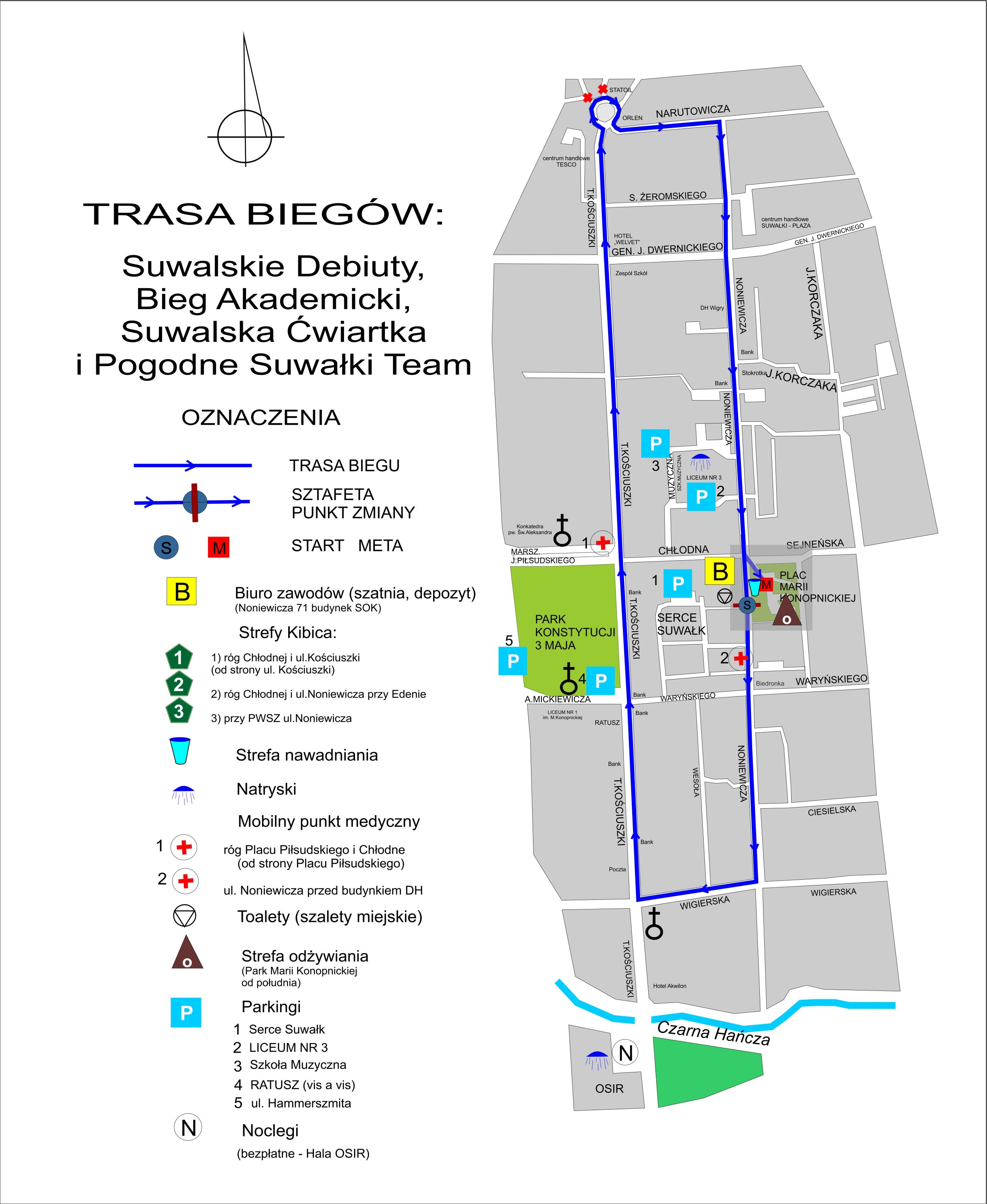 - od godz. 18:30 do godz. 23:30 – ulice: od ul. Krótkiej przez ul. Noniewicza, w prawo ul. Wigierska, w prawo ul. KoÅ›ciuszki, rondo przy TESCO, ul. Narutowicza, w prawo ul. Noniewicza.