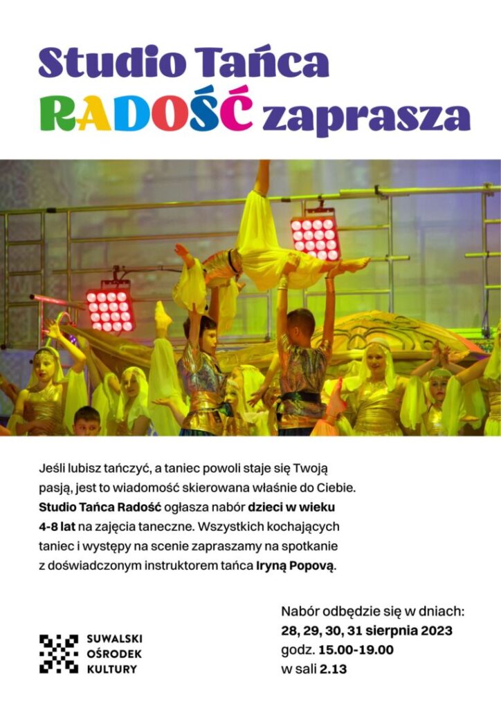 więcej informacji: https://soksuwalki.eu/aktualnosci/nabor-do-studia-tanca-radosc-terminy/