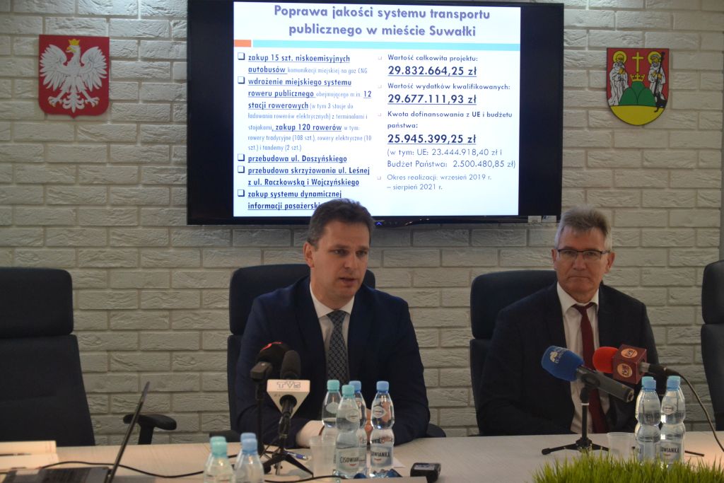 Kolejny krok do wymiany taboru autobusów komunikacji miejskiej w Suwałkach. Władze miasta pozyskały na ten cel blisko 26 mln zł z Unii Europejskiej i budżetu państwa. Cały projekt pochłonie blisko 30 mln zł. Dzięki jego realizacji zakupionych zostanie 15 nowych autobusów, system roweru miejskiego, zostaną wyremontowane drogi oraz budynek warsztatowy w bazie Przedsiębiorstwa Gospodarki Komunalnej.