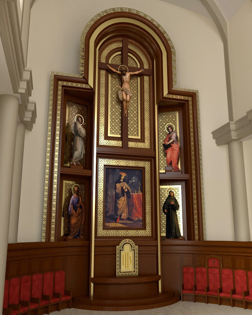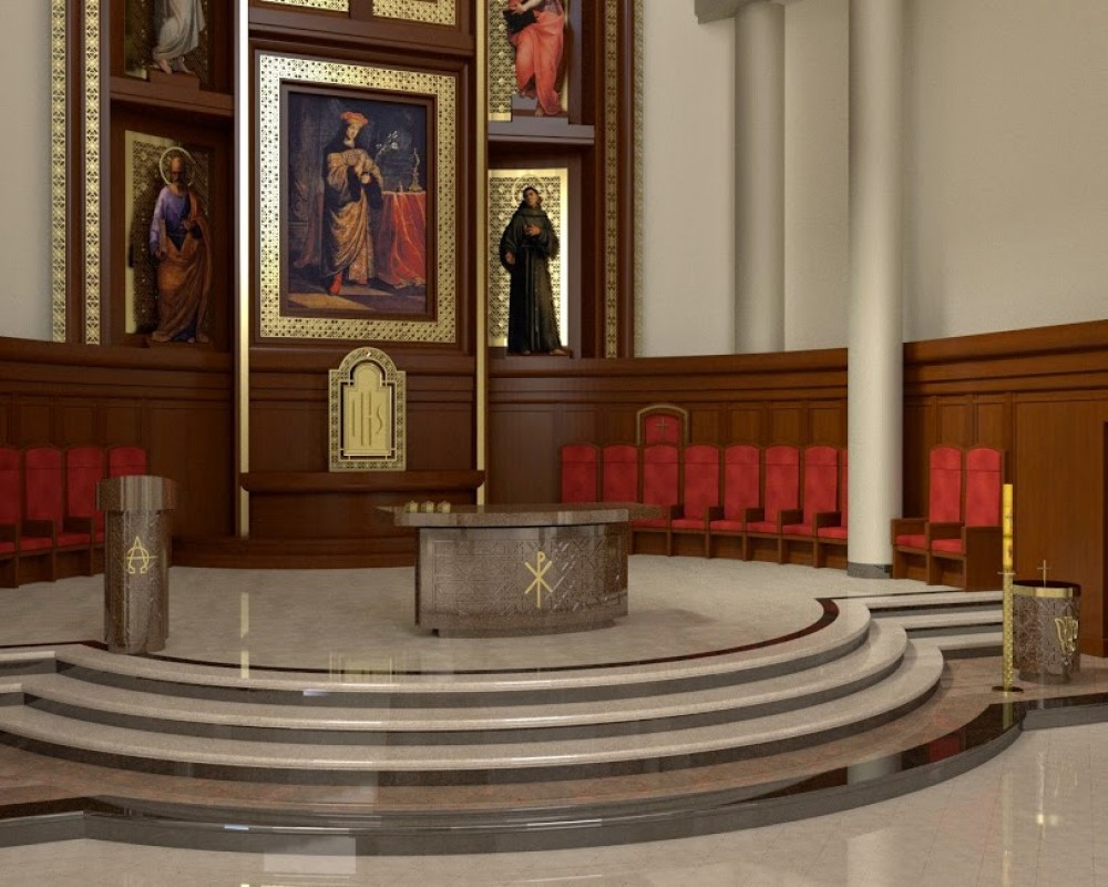 W kościele pracuje już stolarz i kamieniarz. Wkrótce w prezbiterium montowane będą długie dębowe deski. Kilkumetrowy ołtarz otoczony będzie ławkami dla księży i ministrantów. Mimo że świątynia wybudowana jest w nowoczesnym stylu, miejsce sprawowania Mszy świętej ma klasyczny, tradycjonalistyczny charakter.