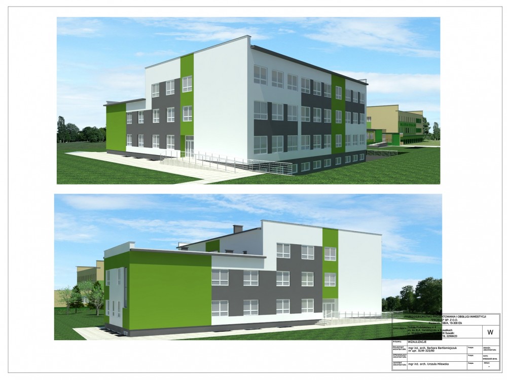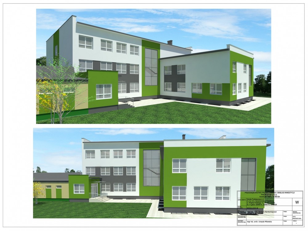 Rok szkolny zaczynający się we wrześniu 2020 dzieci rozpoczną już w zmodernizowanym budynku. Powierzchnia użytkowa rozbudowywanej części szkoły wyniesie 2 489,70m2 przy kubaturze 8 898,60m3. Szacunkowa wartość inwestycji to ok 12 mln zł.